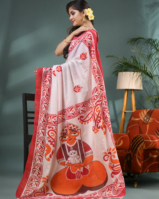 Pure Cotton Handloom Uma Ganesh Printed Saree with Blouse Piece