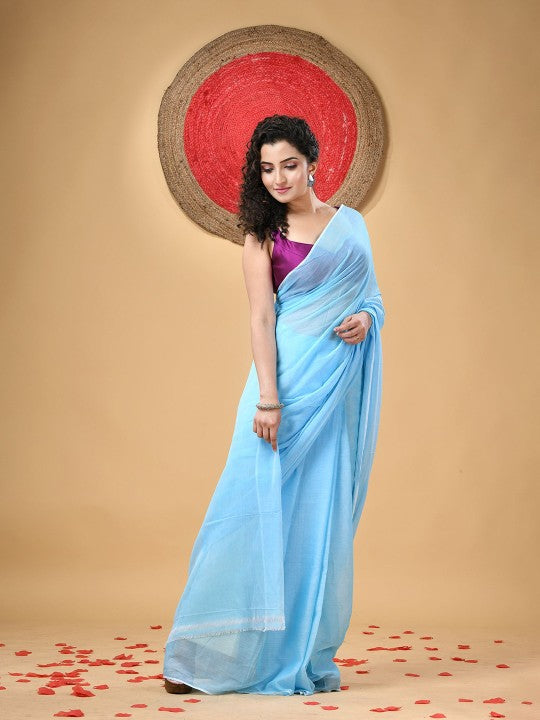 Cotton Blend Handloom 2D Organza Saree Without Blouse Piece