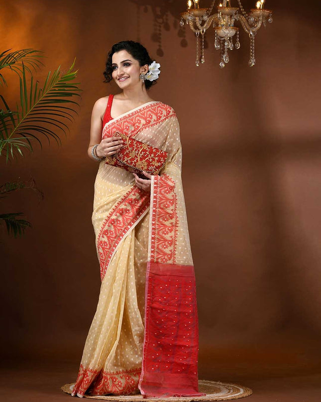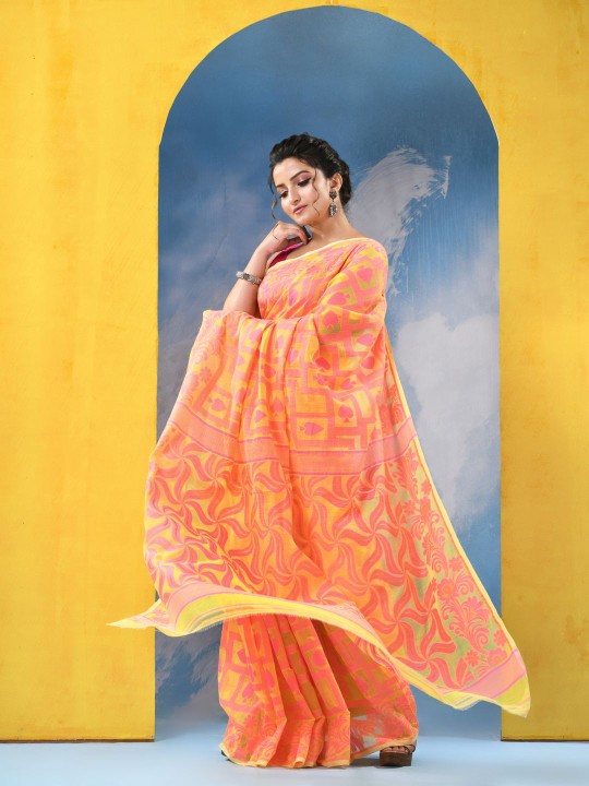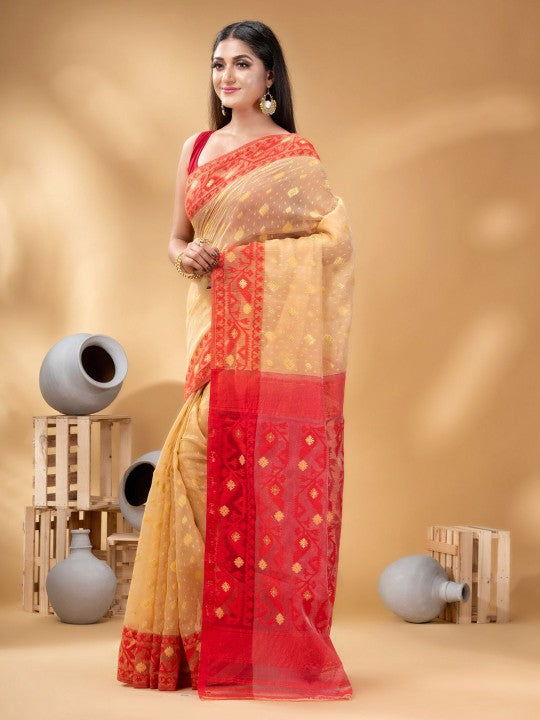 Hirokduti Resham Dhakai jamdani Bengal Pure Cotton Handloom Saree Whole Body Design without Blouse Piece