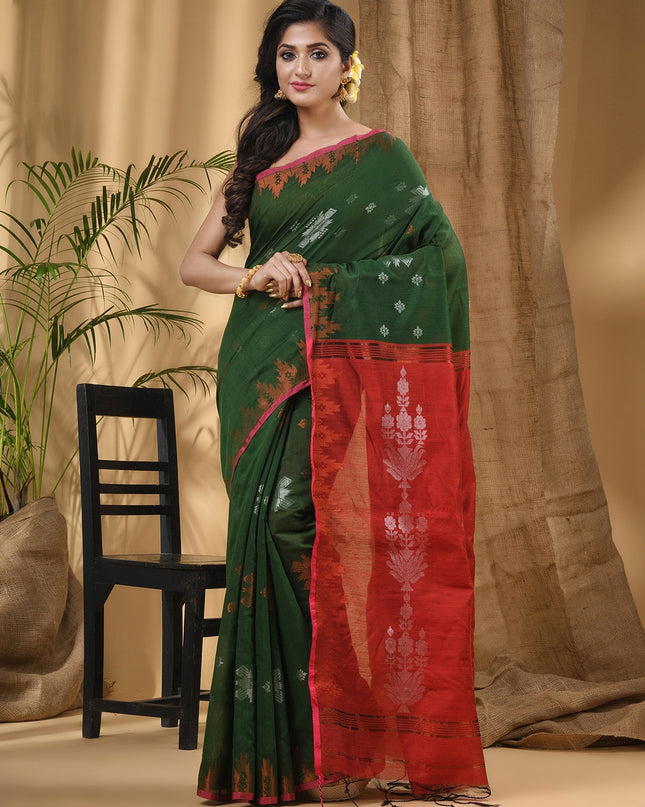 Tamarind Leaf Resham Dhakai Jamdani Pure Cotton Handloom Saree without Blouse Piece