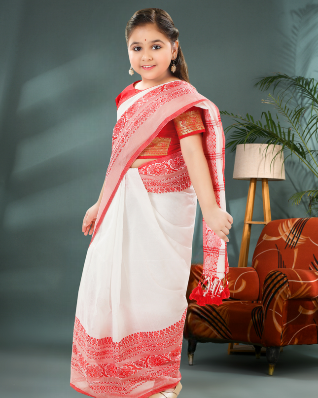 Pure Cotton Handloom Begampuri Design Kids Saree