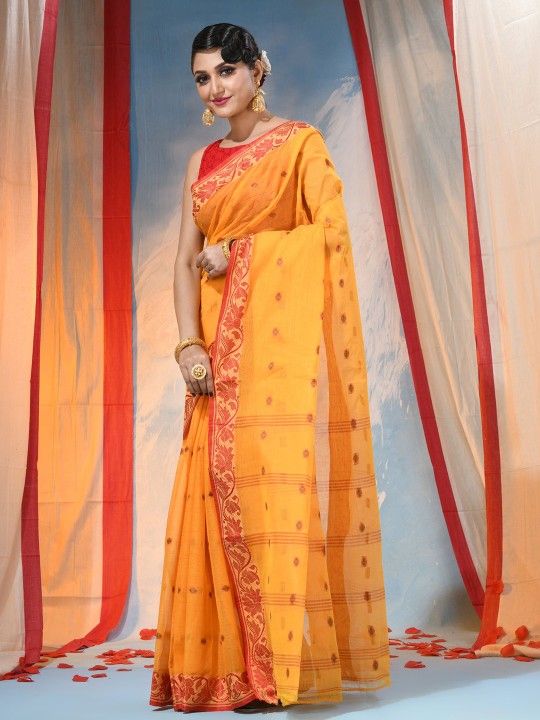 Traditional Yellow & Red Woven Pure Cotton Saree with Elegant Design