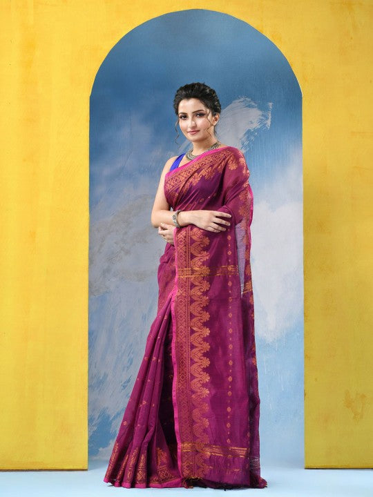 Ethnic Motifs Pure Cotton Taant Saree for Traditional Attire