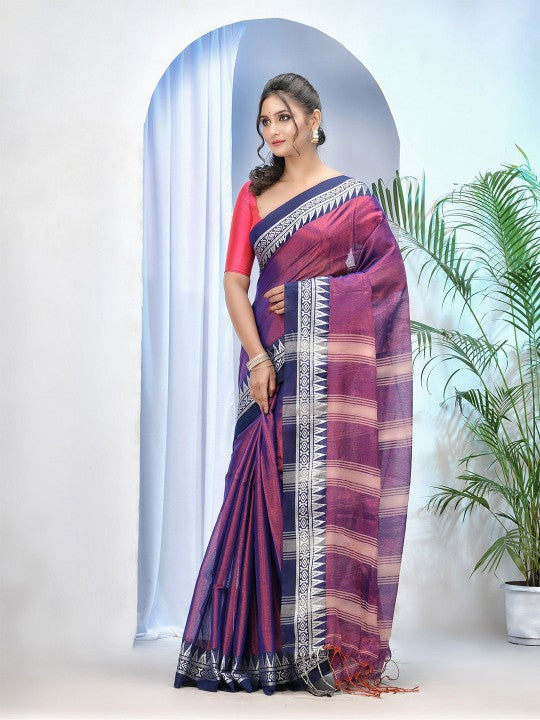 Blue & Pink Woven Design Pure Cotton Jamdani Saree