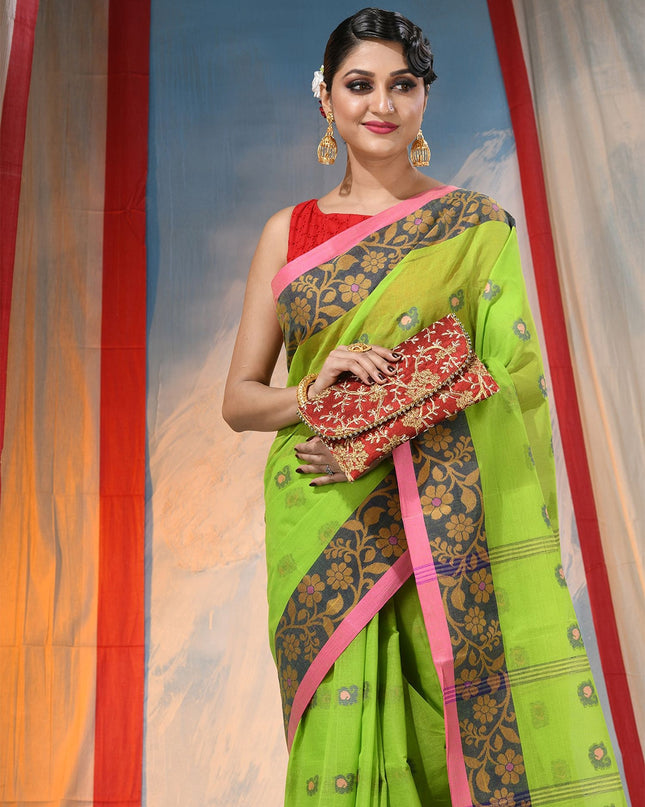 Exquisite Floral Pure Cotton Taant Saree for Women