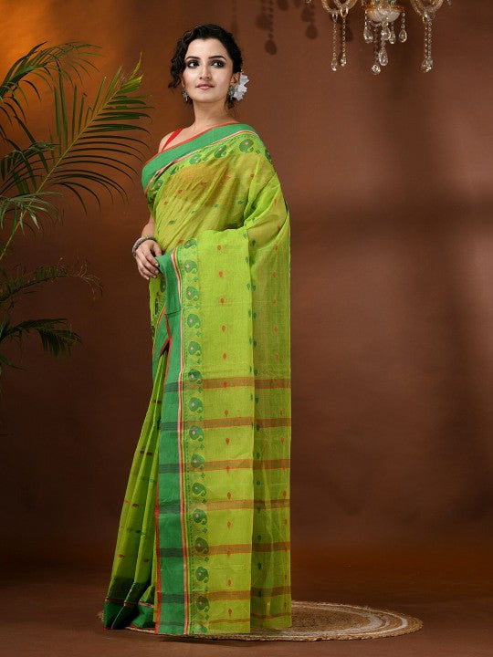 Elegant Green Pure Cotton Taant Saree with Woven Design