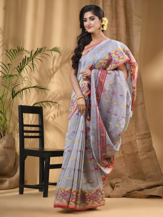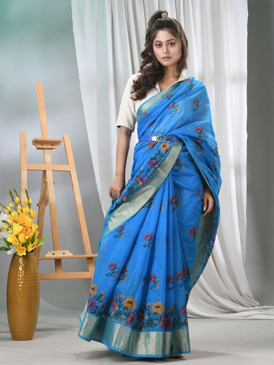 Exquisite Floral Woven Zari Cotton Silk Saree