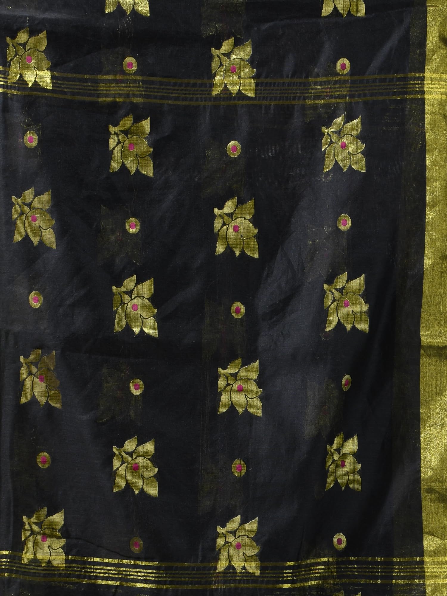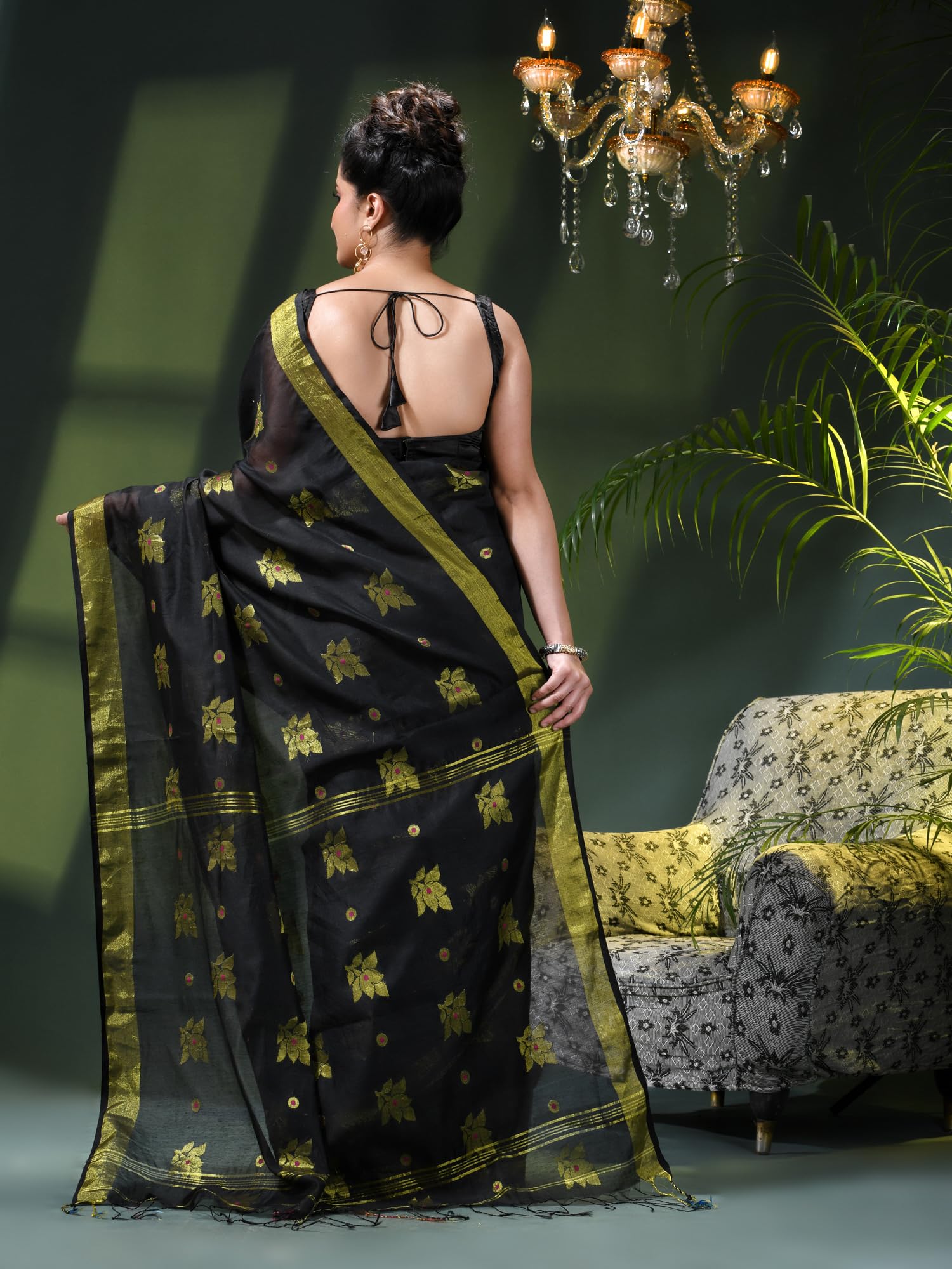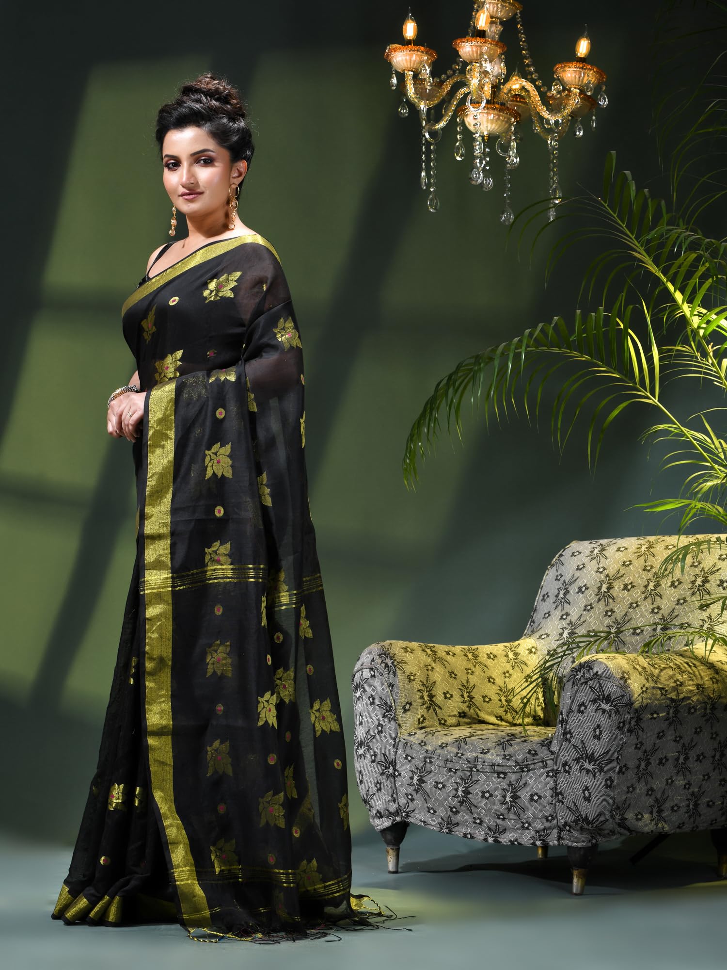 Cotton Silk Party Wear Saree Trendy Design Gulnaz Georgette Chiffon Cotton Saree (Black)