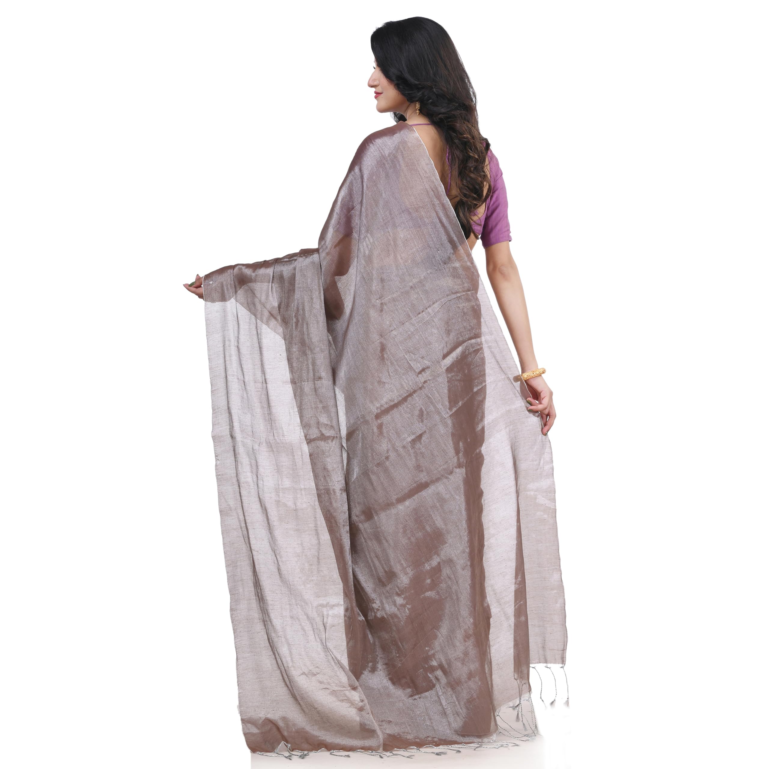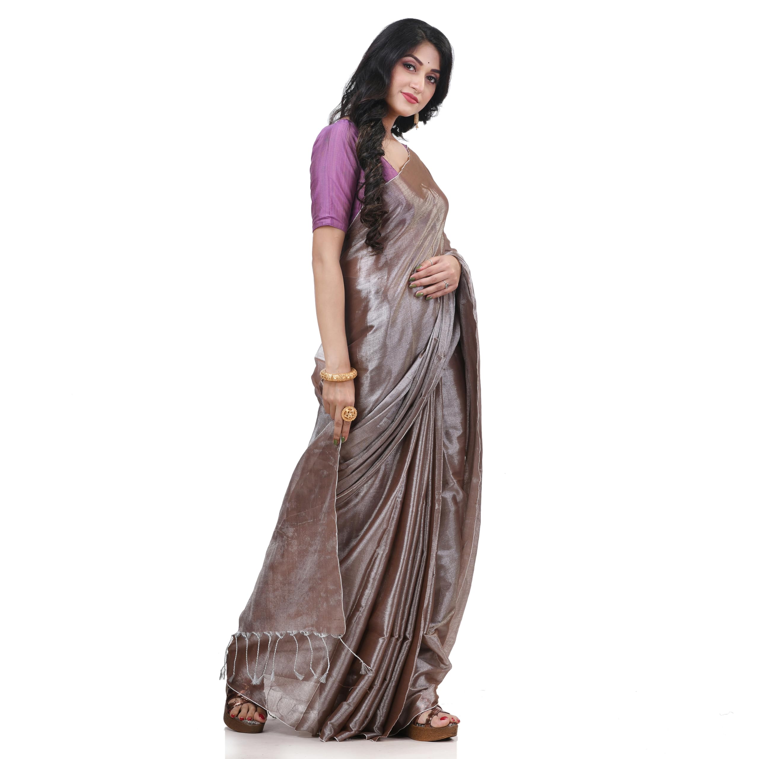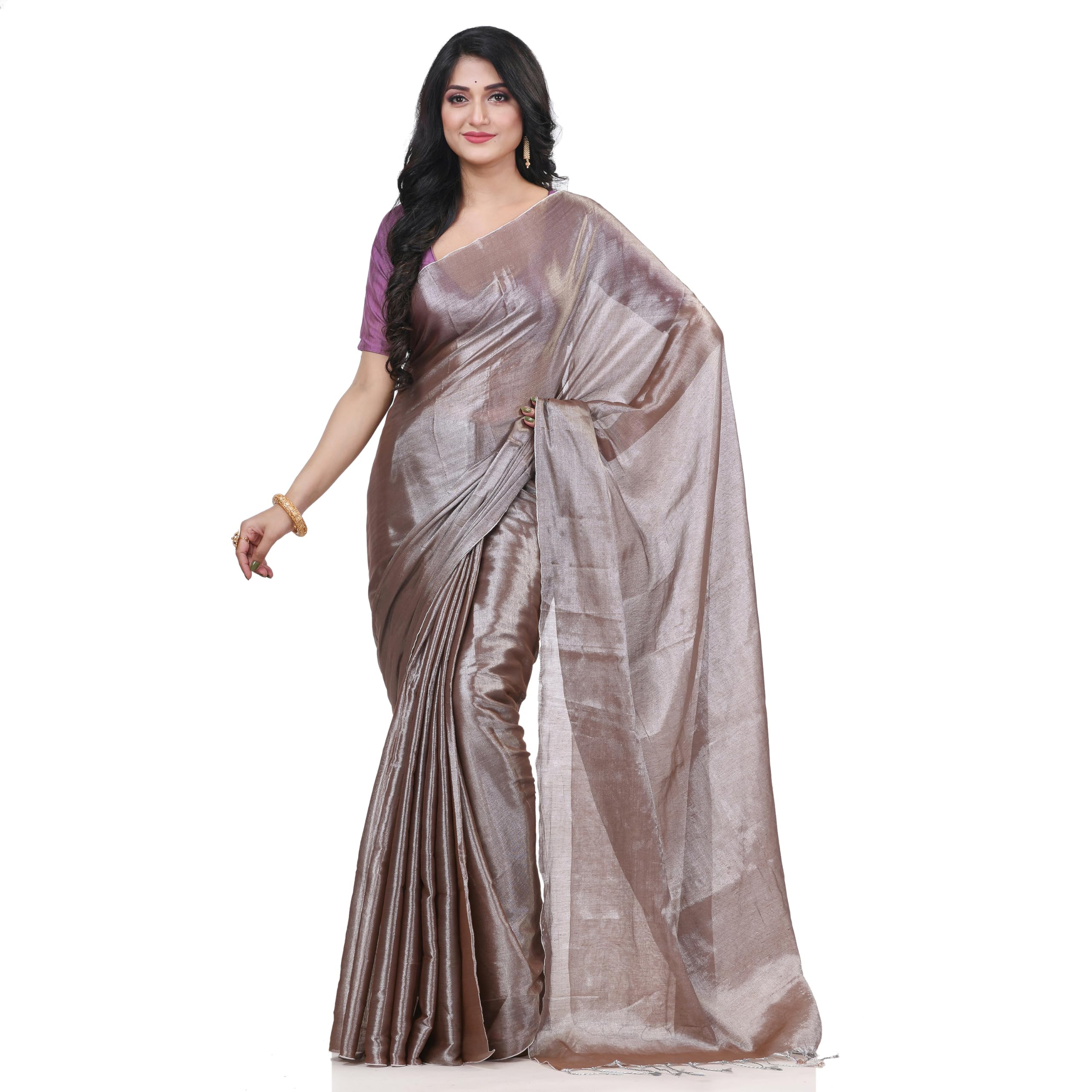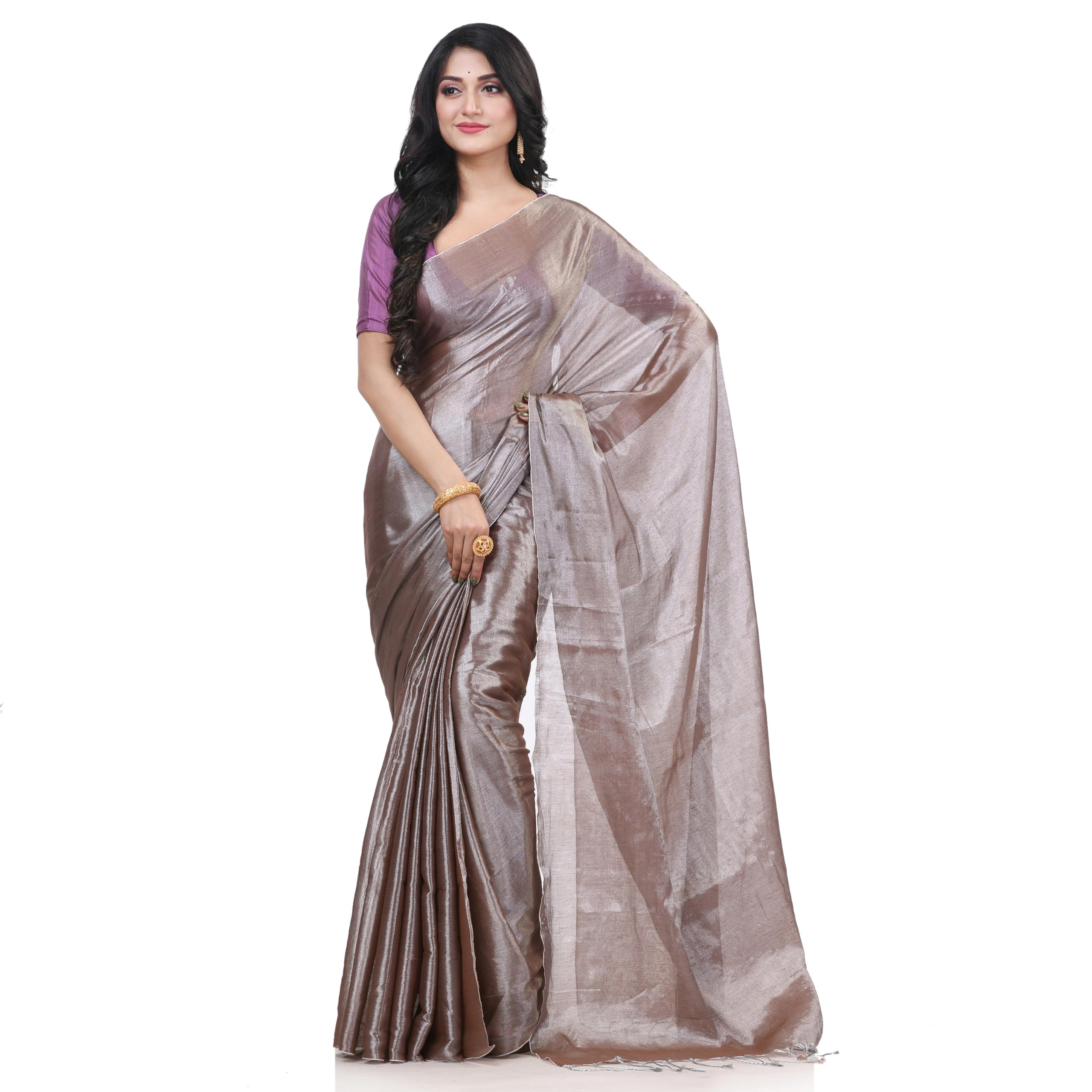 dB Women`s Bengal MayurKonthi Color Changer Tissue Pure Handloom Cotton Saree With Blouse Piece Free Size Grey Gold