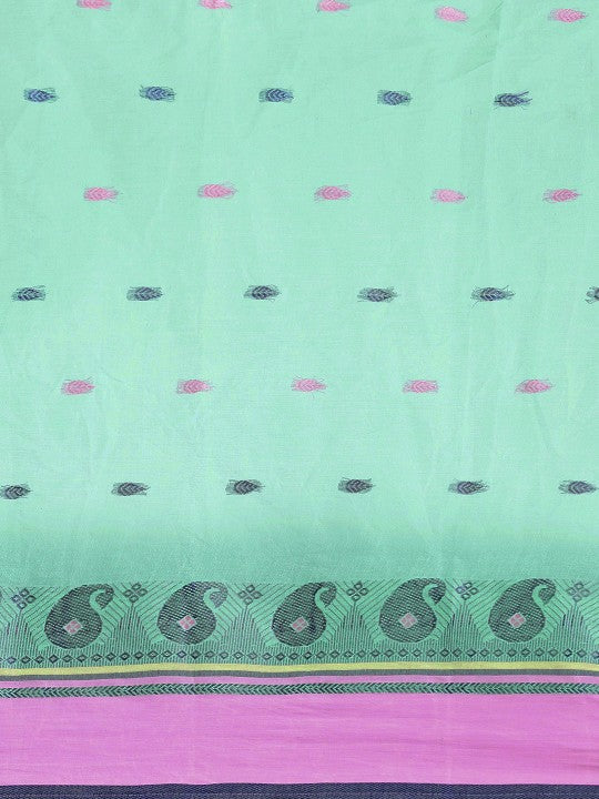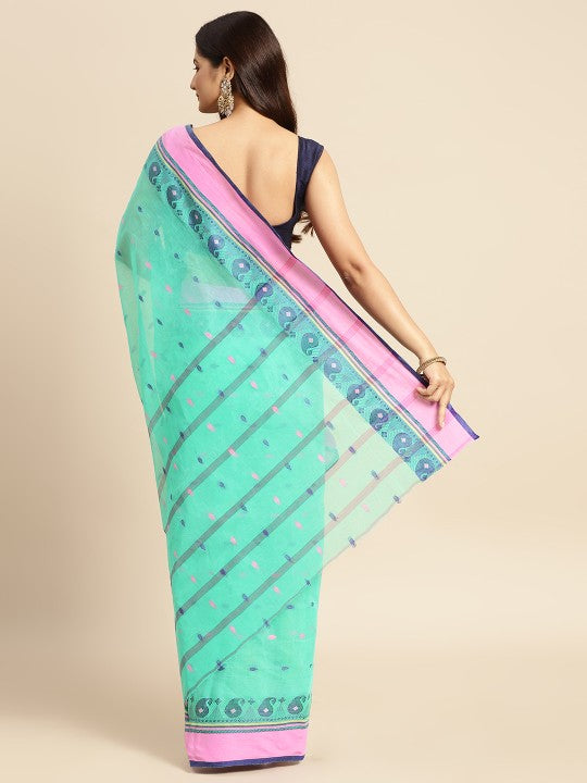 Blue taant saree. Woven design ethnic motif saree with woven design border. The saree does not come with a blouse piece. The model is wearing a blouse for modelling purpose only.