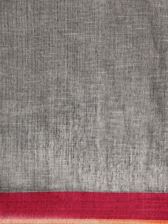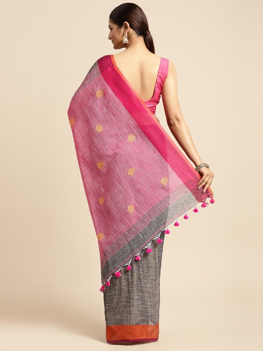 Charcoal Grey & Pink Geometric Design Pure Cotton Taant Saree
