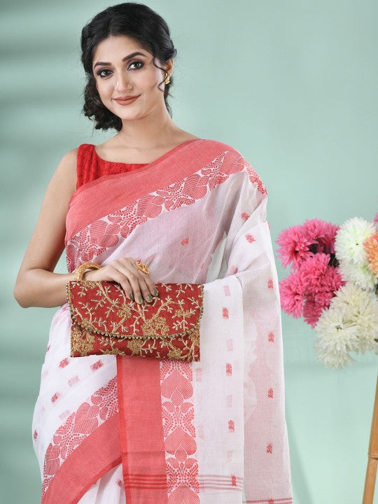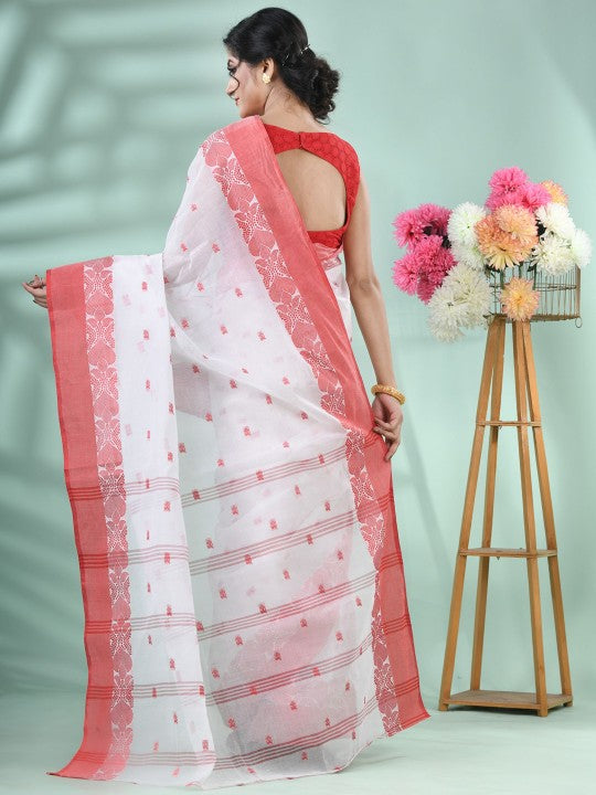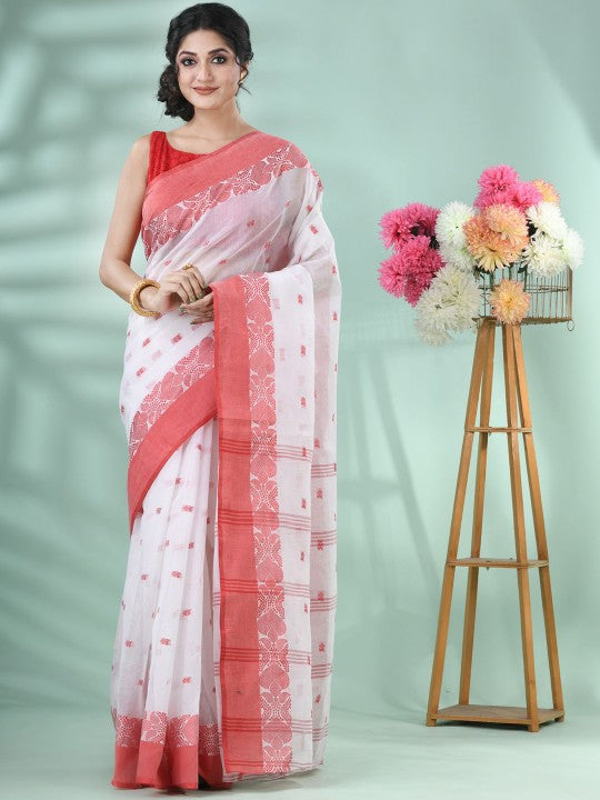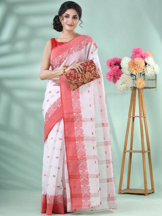 Elegant Woven Design Taant Saree with Unstitched Blouse Piece