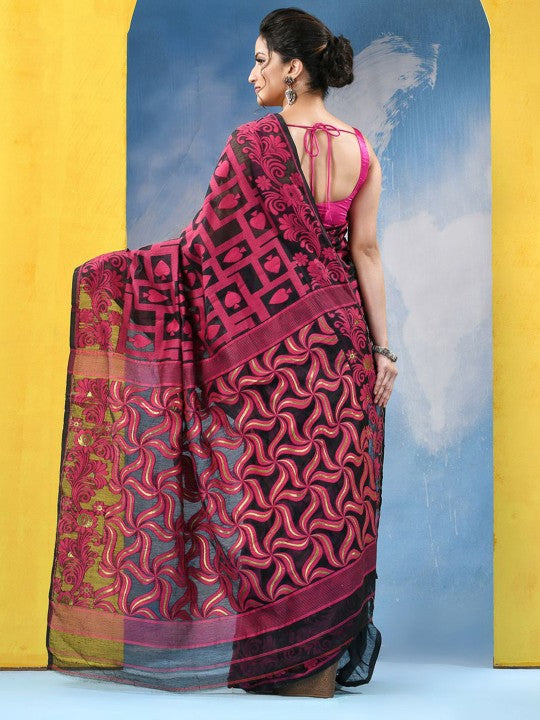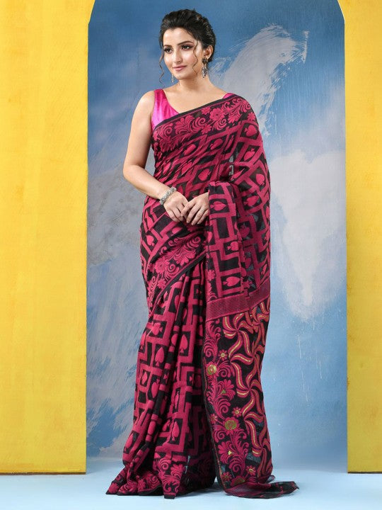 Ethnic Motifs Handloom Jamdani Saree with Contrast Border