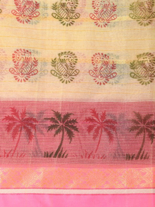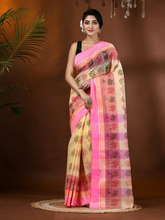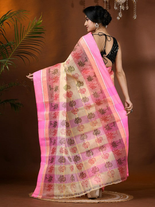 Ethnic Motifs Printed Pure Handloom Cotton Saree with Block Print
