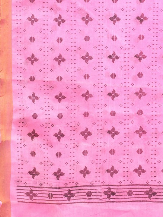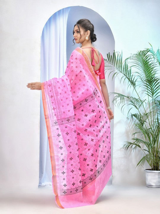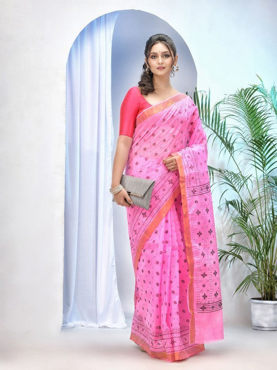 Ethnic Motifs Pure Cotton Taant Pink Saree