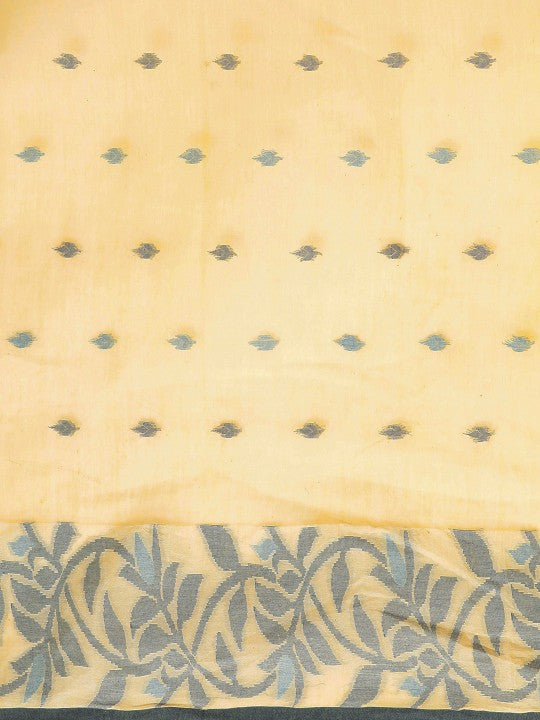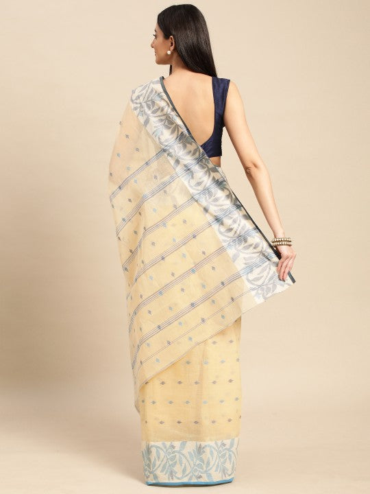 Orange taant saree. Ethnic motifs woven design saree with woven design border. The saree does not come with a blouse piece. The model is wearing a blouse for modelling purpose only.