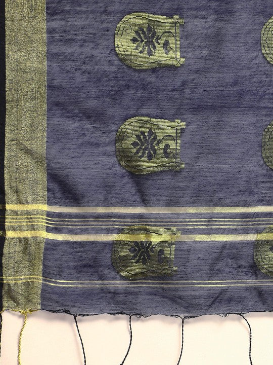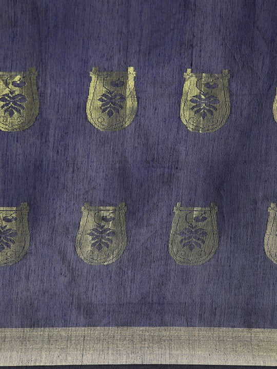 This beautiful blue taant saree features ethnic motifs woven designs. It has a solid border and intricate zari detailing. The saree comes with an unstitched blouse piece. The blouse worn by the model might be for styling purposes only. Please check the image of the blouse piece to understand how the actual blouse piece looks like. This DESH BIDESH Ethnic Motifs Zari Taant Saree is available for women. You can buy it from DESH BIDESH at Rs. 4799.