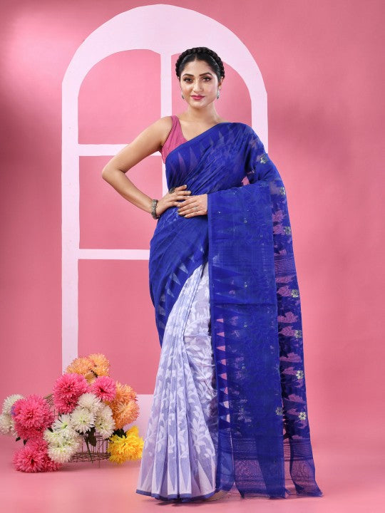 Floral Woven Design Pure Cotton Half And Half Jamdani Saree