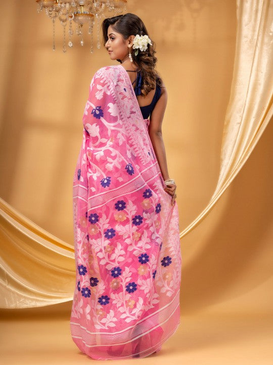 Floral Woven Design Zari Pure Cotton Jamdani Saree