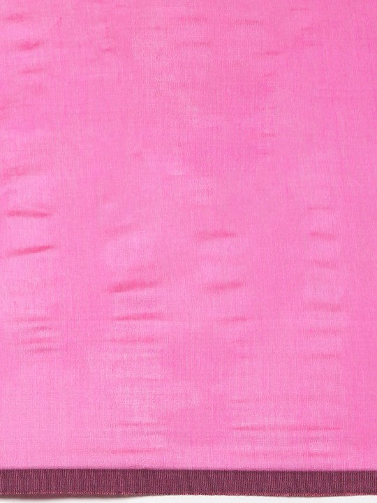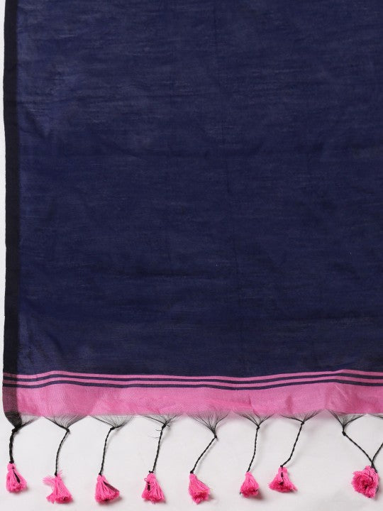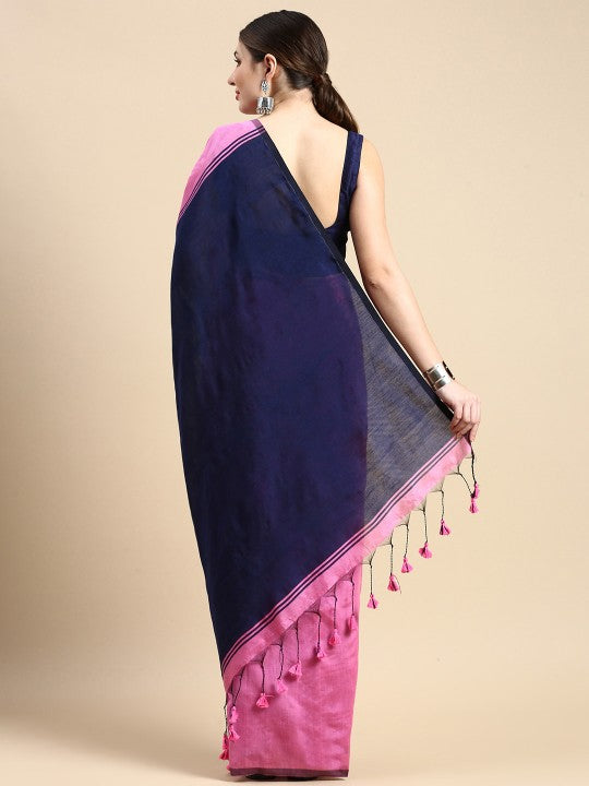 Bengal Half Half Ghicha Handloom Cotton Silk Saree With Blouse Piece (Pink Blue)