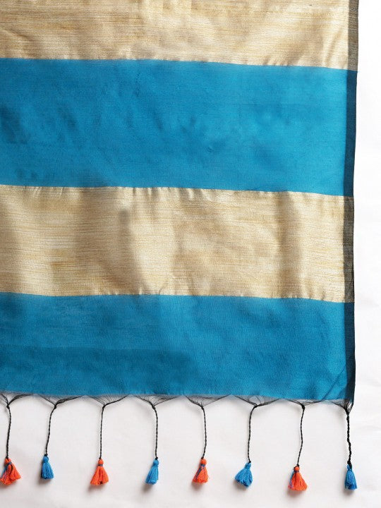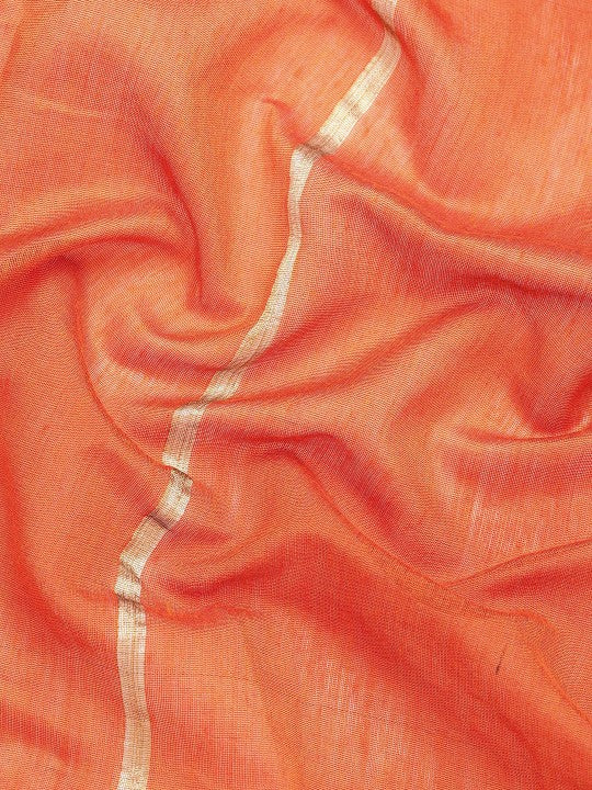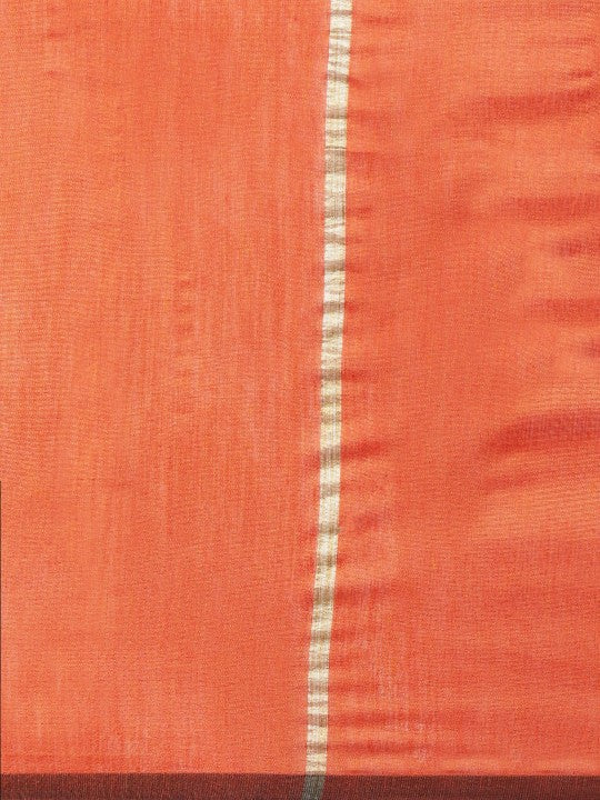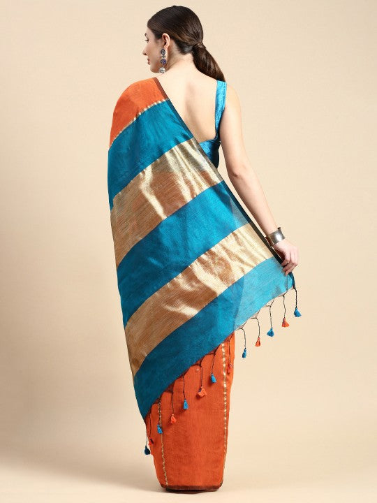 Bengal Handloom Cotton Silk Blend Woven Saree with Blouse Piece (Orange Blue)