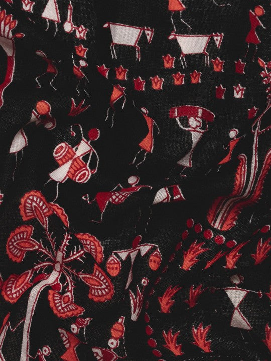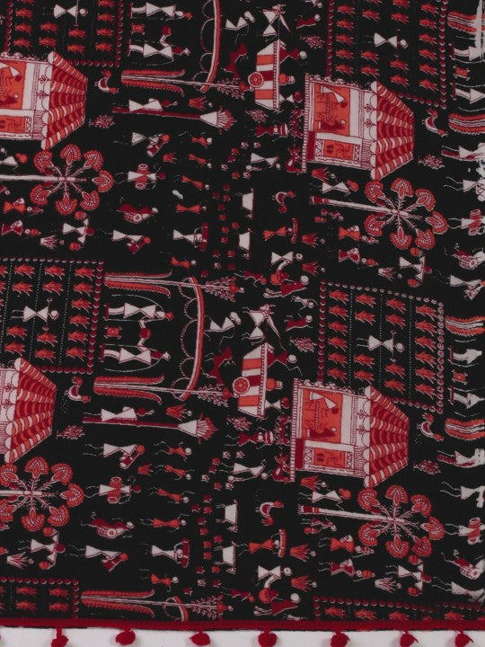 Traditional Bengal Soft Kalamkari Printed Handloom Cotton Saree Border Tassels Without Blouse Piece