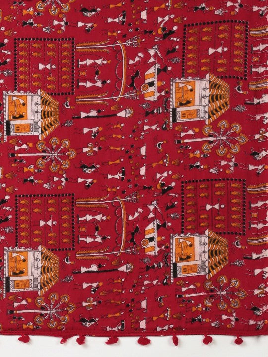 Traditional Bengal Soft Kalamkari Printed Handloom Cotton Saree Border Tassels Without Blouse Piece