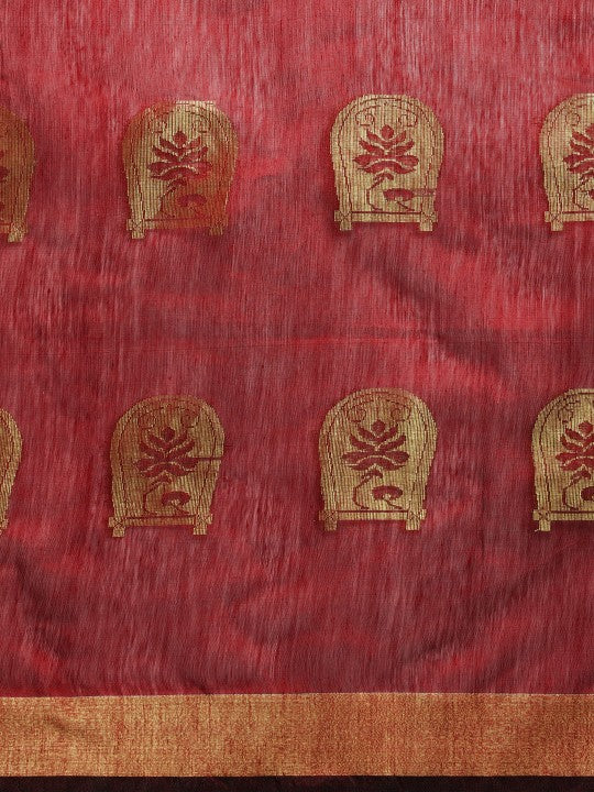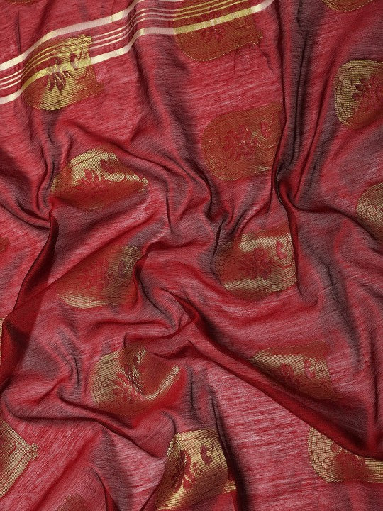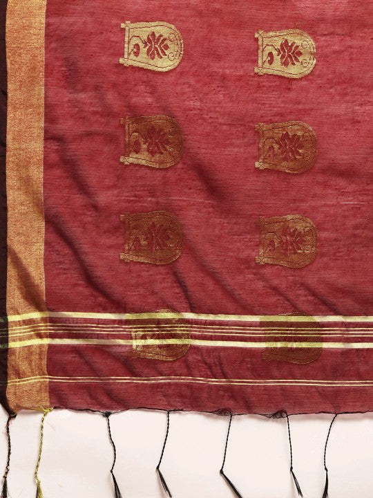 Maroon & Golden Ethnic Design Pure Cotton Taant Saree