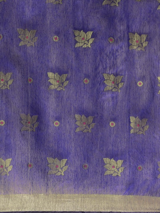 Navy Blue & Golden Ethnic Motifs Pure Cotton Muga Saree