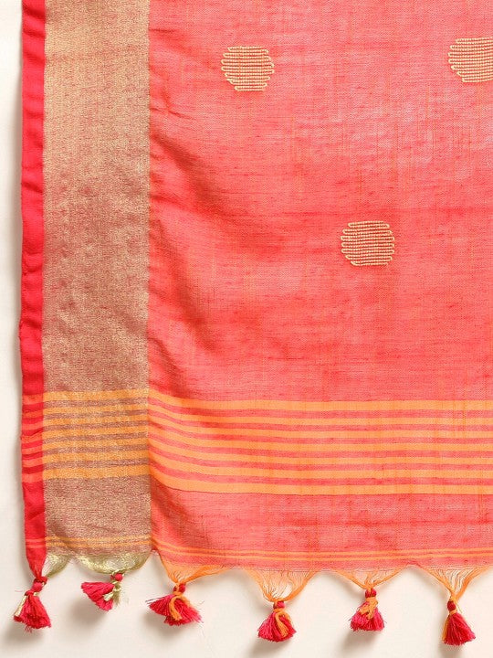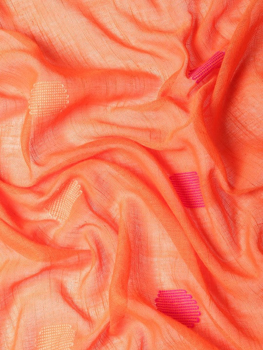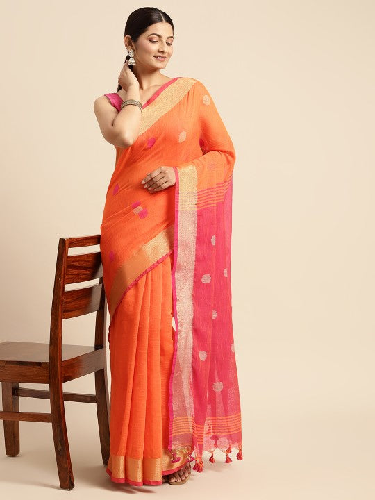 Orange & Beige Geometric Design Pure Cotton Taant Saree