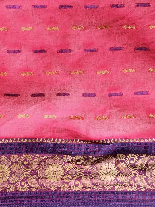 Pink Ethnic Motifs Pure Cotton Taant Saree