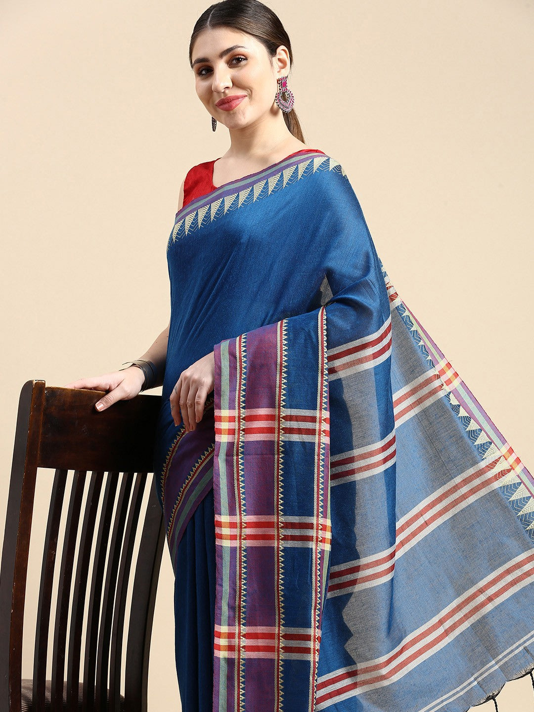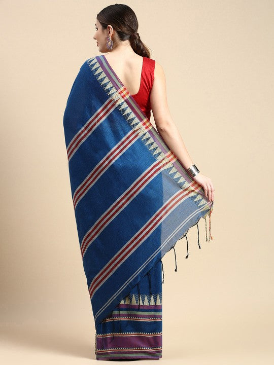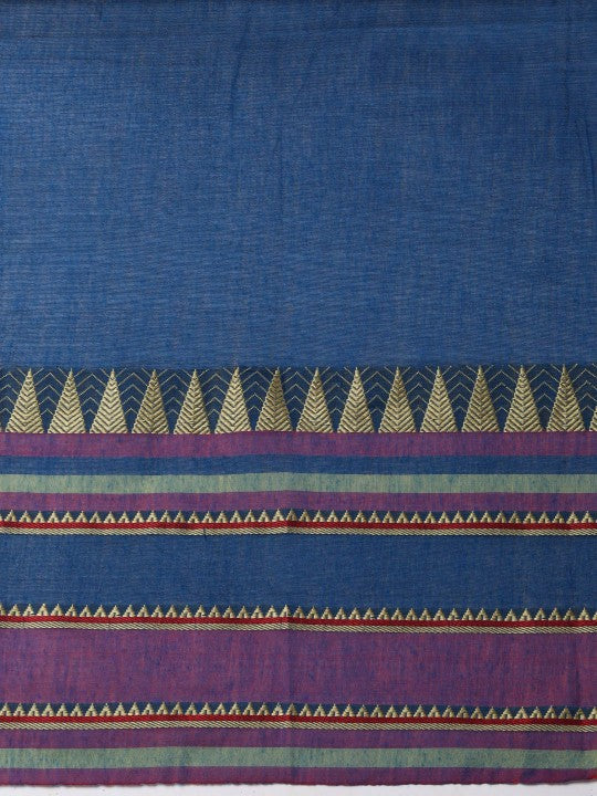 Presenting the exquisite DESH BIDESH Printed Pure Cotton Khadi Saree, a perfect blend of tradition and contemporary style. This elegant blue khadi saree showcases a captivating geometric printed design, beautifully complemented by a finely woven border. It comes with an unstitched blouse piece, offering you the flexibility to tailor it to your unique preference. Crafted from premium pure cotton, this saree ensures exceptional comfort and breathability, making it ideal for various occasions. The intricate detailing on the border adds a touch of sophistication and charm. Remember to dry clean this beautiful garment to maintain its pristine quality and vibrant colours. This saree is a versatile addition to any wardrobe, suitable for festive celebrations, formal events, or everyday traditional wear. Its lightweight nature and soft fabric promise a graceful drape and an effortlessly stylish look. Embrace the rich textile heritage with this timeless piece from DESH BIDESH.