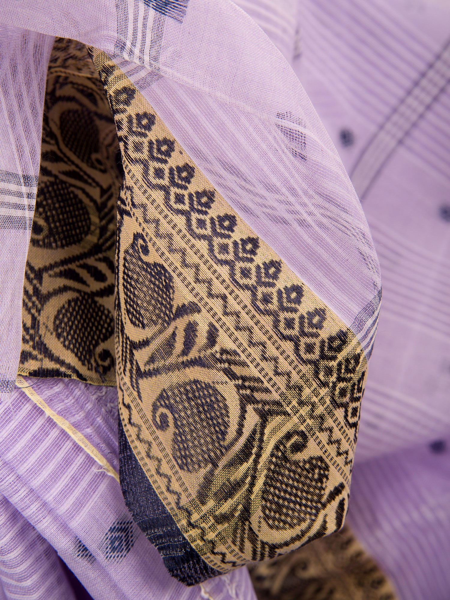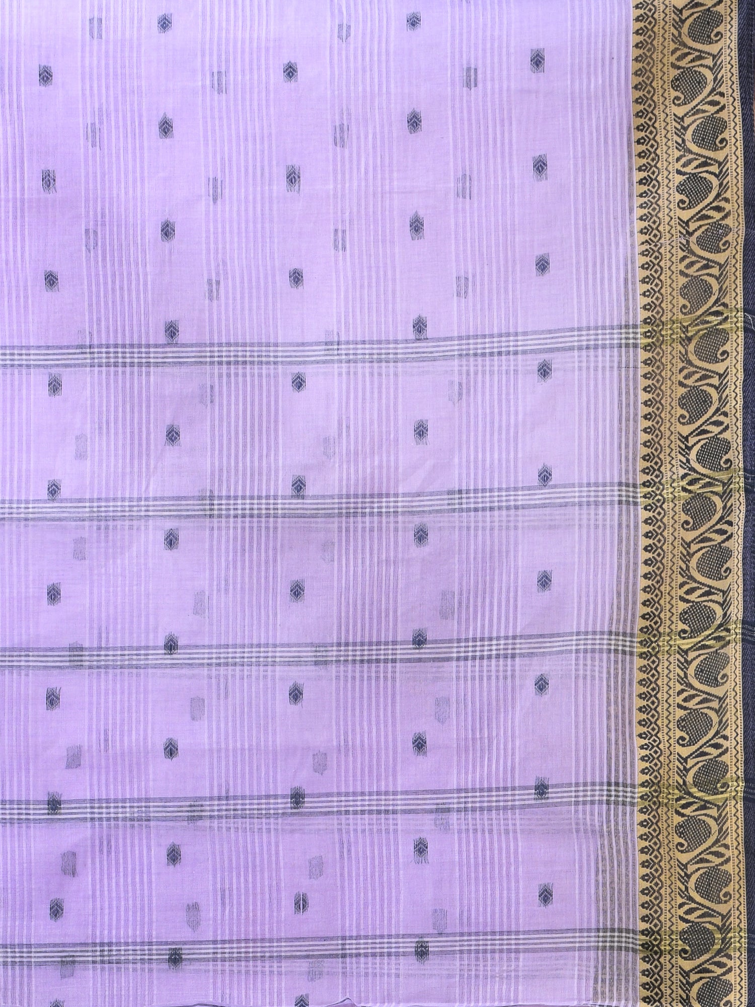 Pure Cotton Handloom Kolkabuti Leela Design Tant Saree - Purple