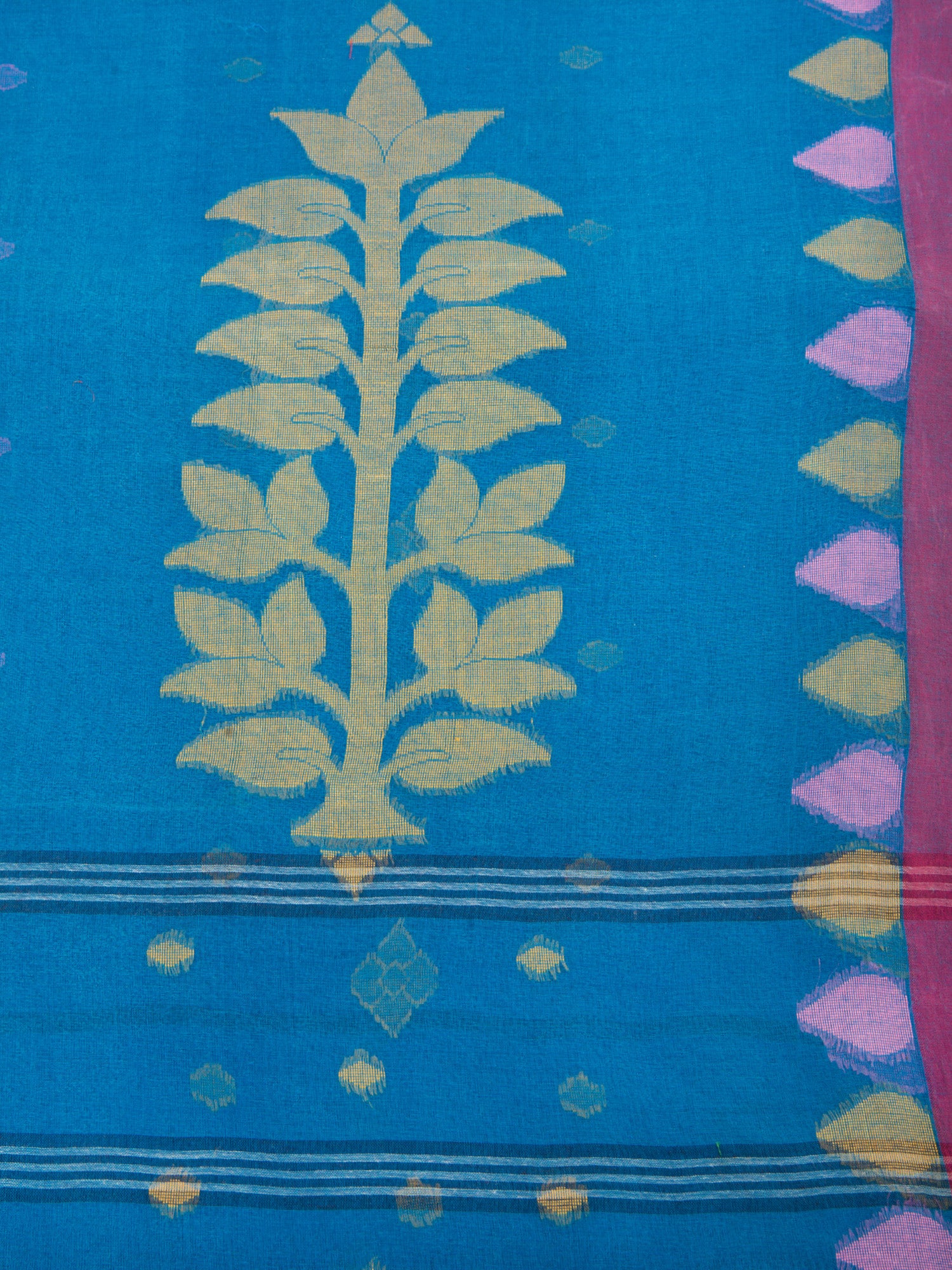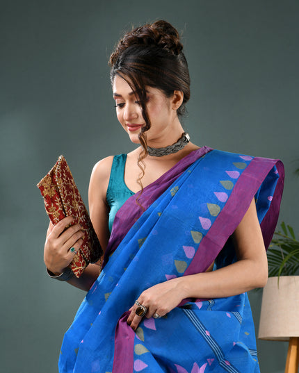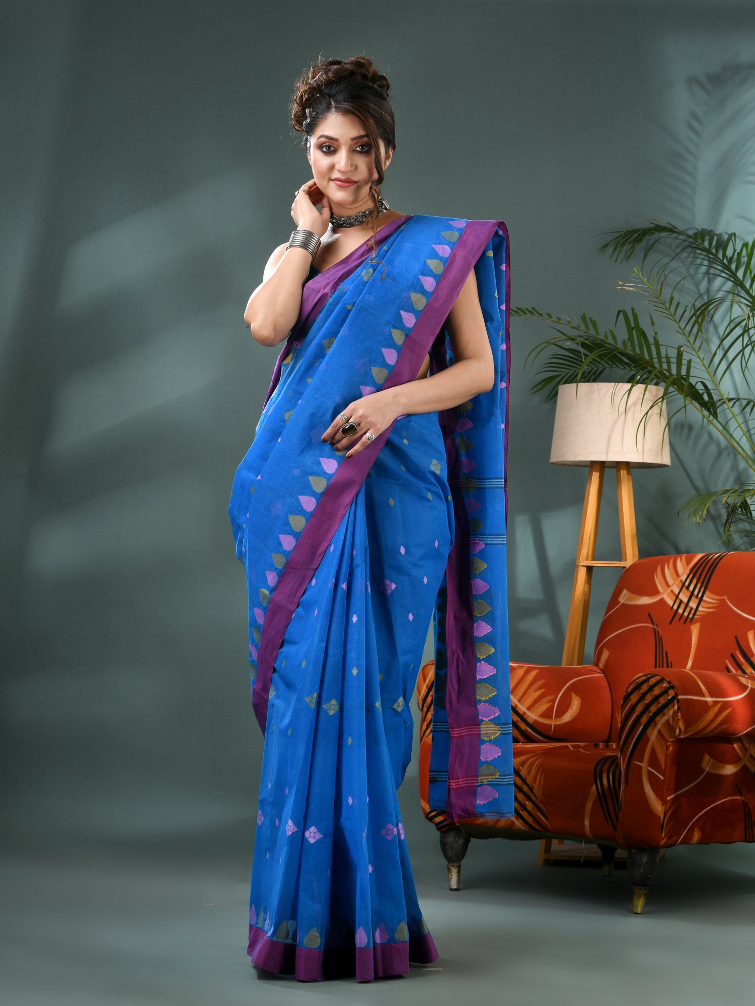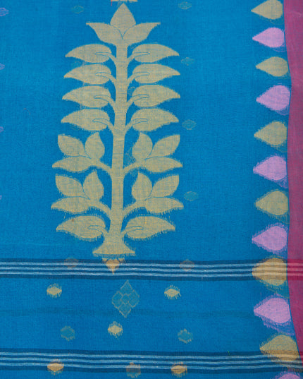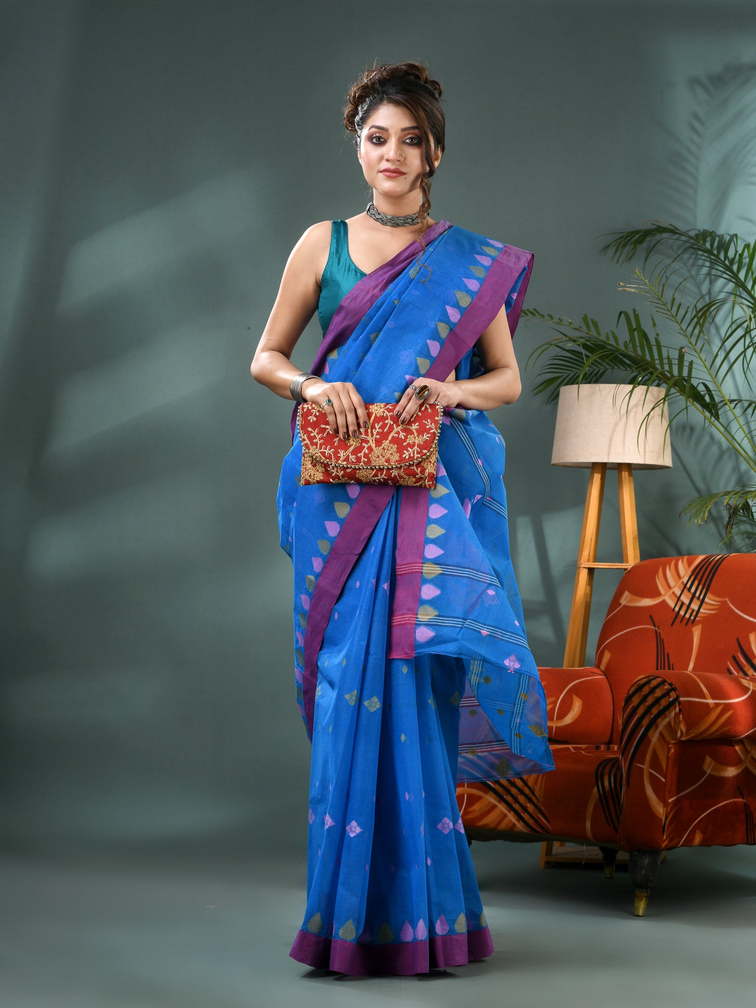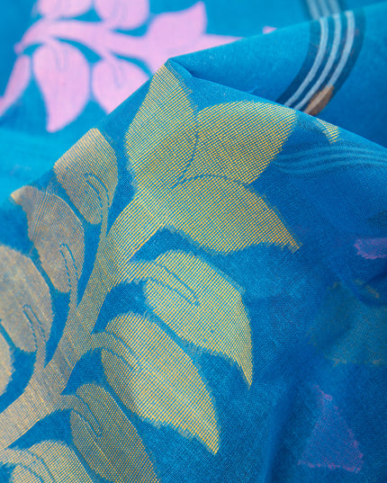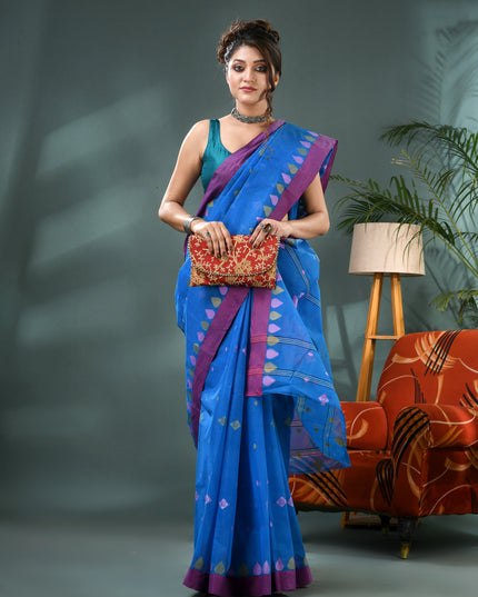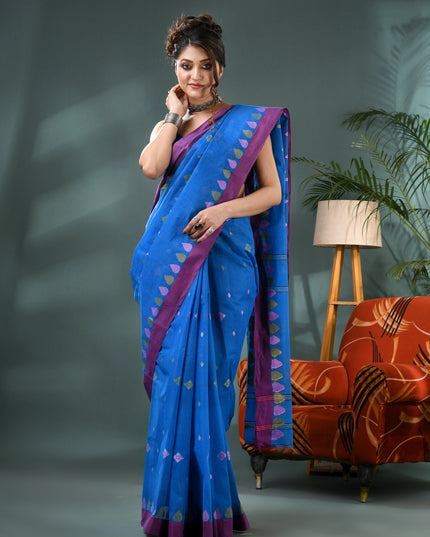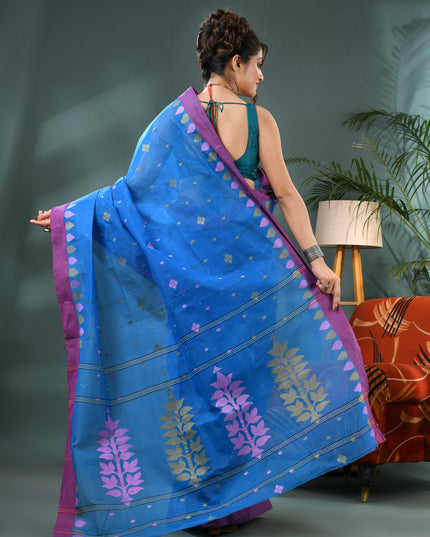 Pure Cotton Handloom Nilpari Design Tant Saree - Sky Blue