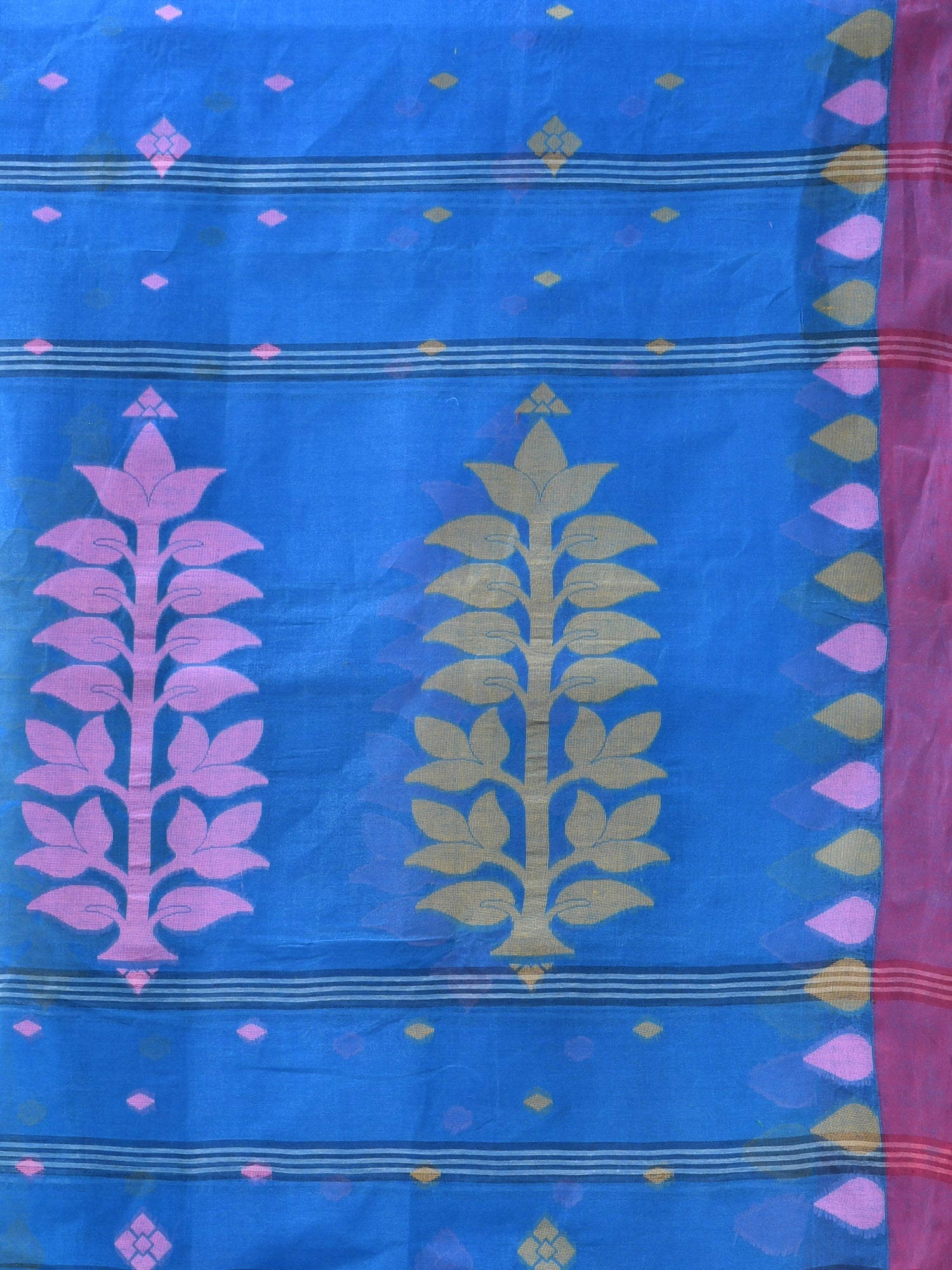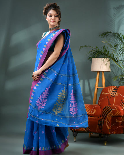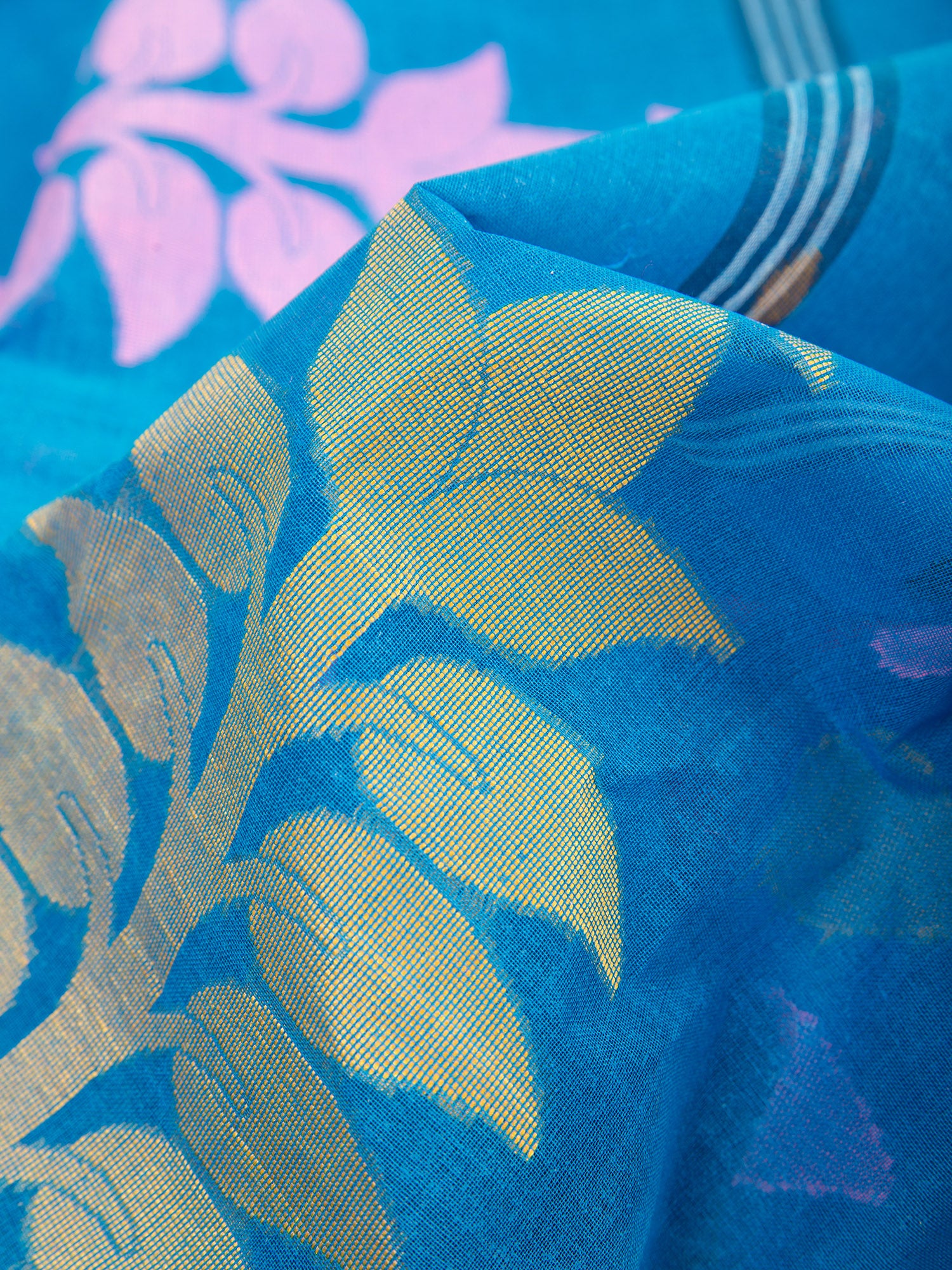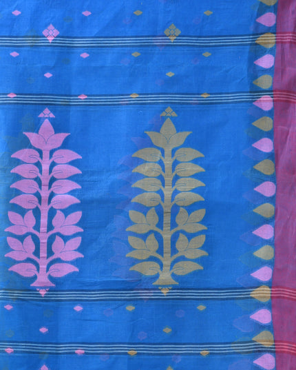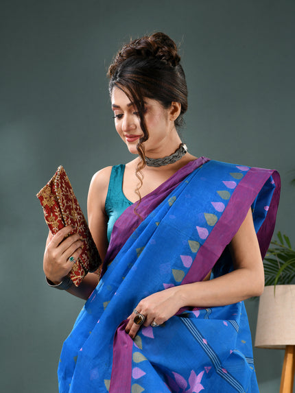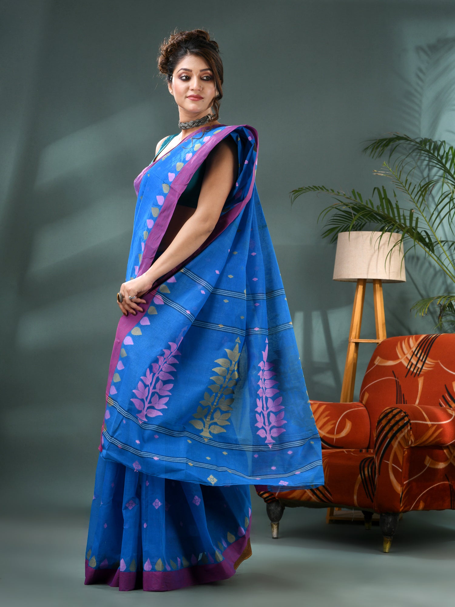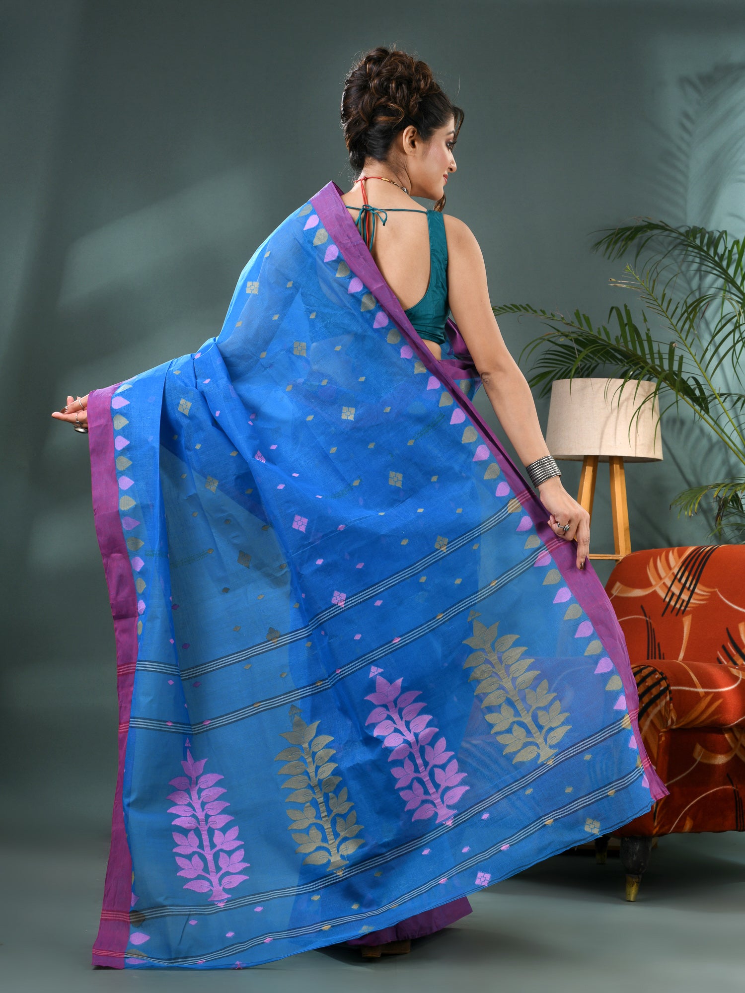 Pure Cotton Handloom Nilpari Design Tant Saree - Sky Blue