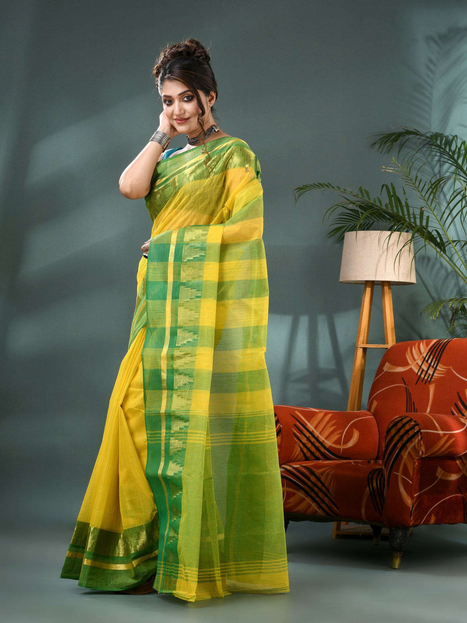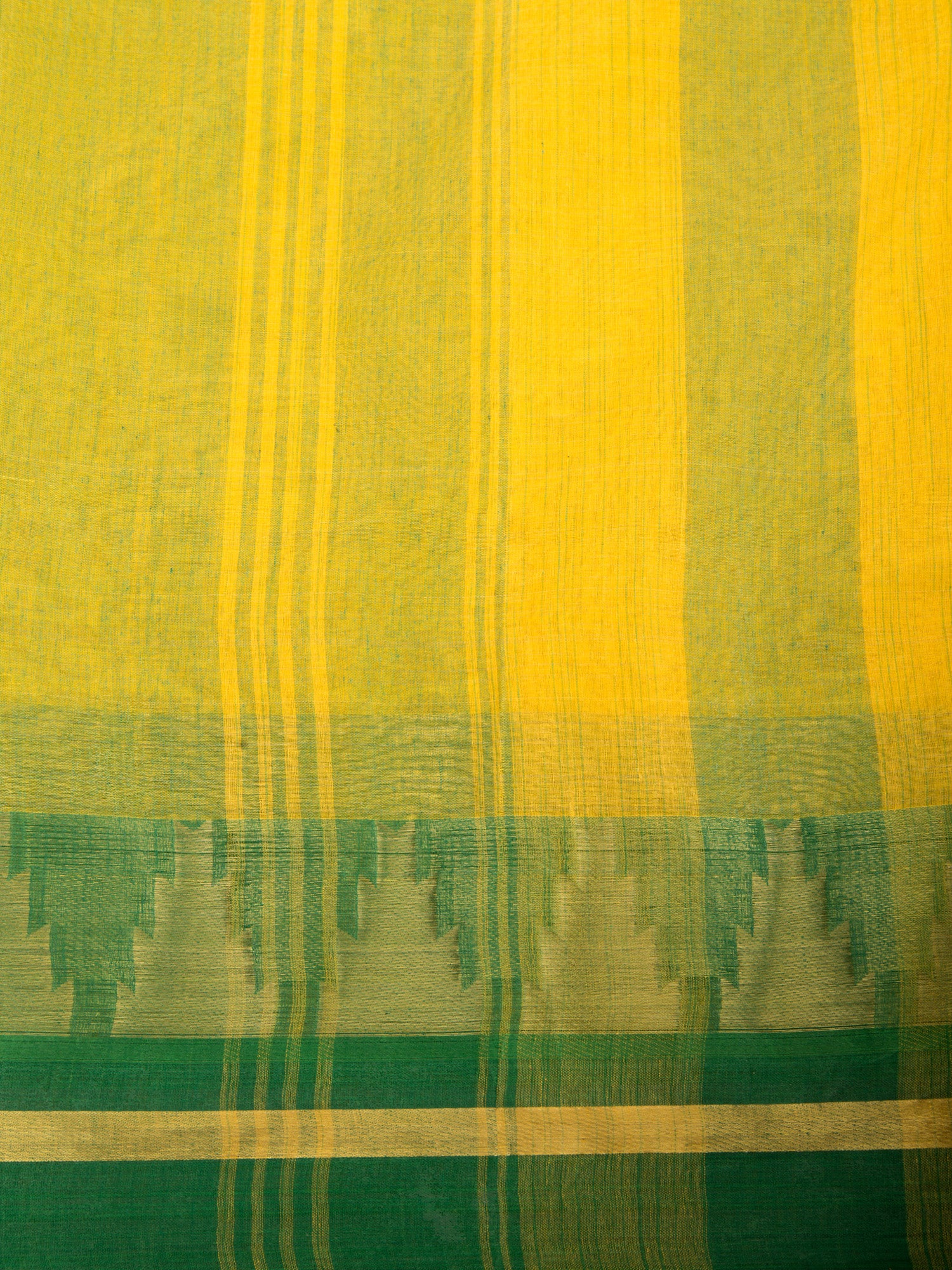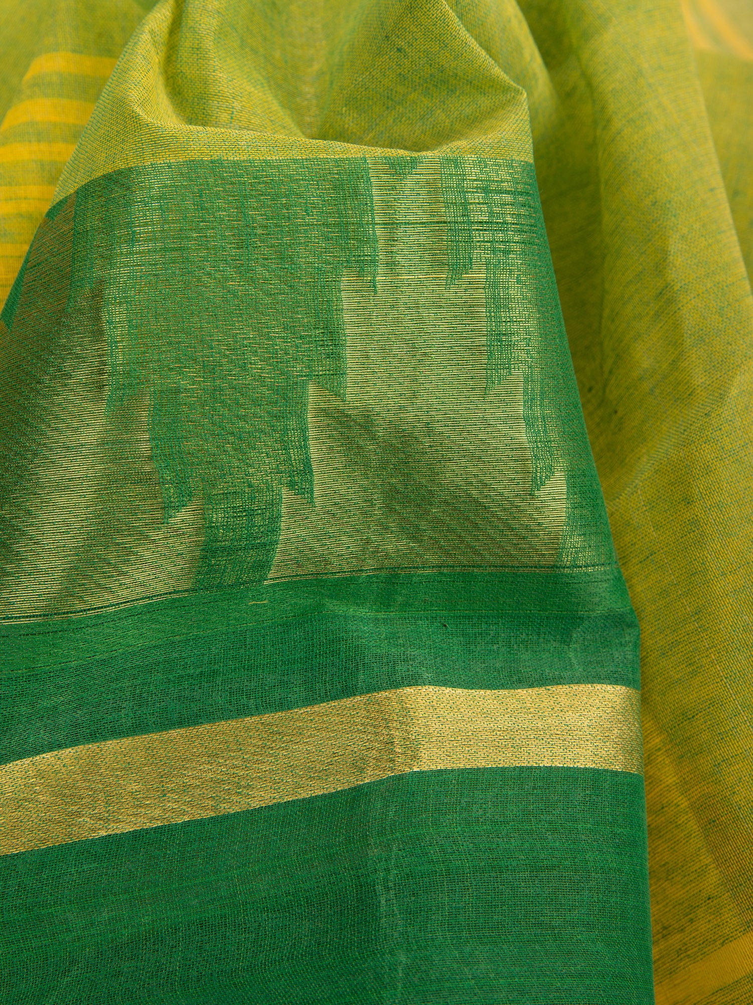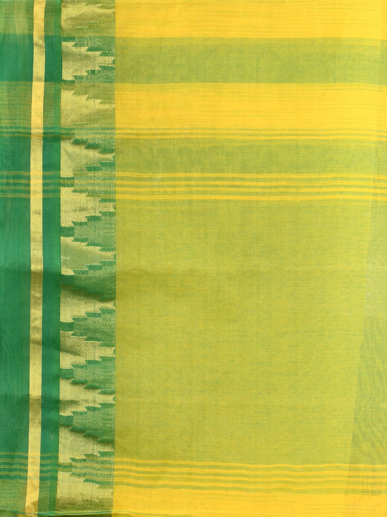 Pure Cotton Handloom Zari Temple Design Tant Saree - Green Yellow