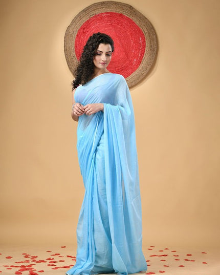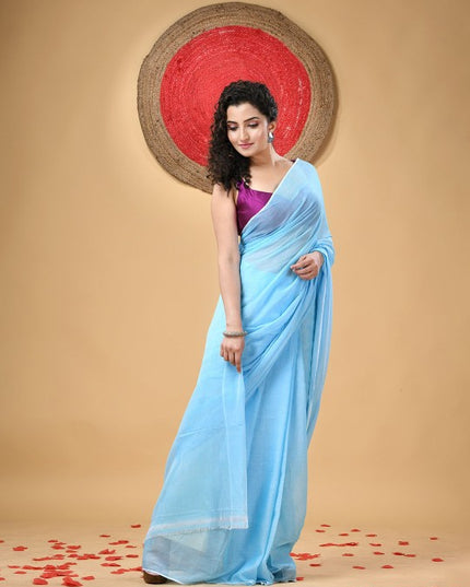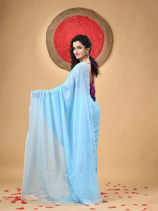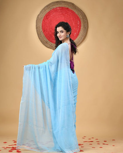 Pure Cotton Saree: Elegant, Lightweight, Sky Blue Women's Traditional Indian Attire