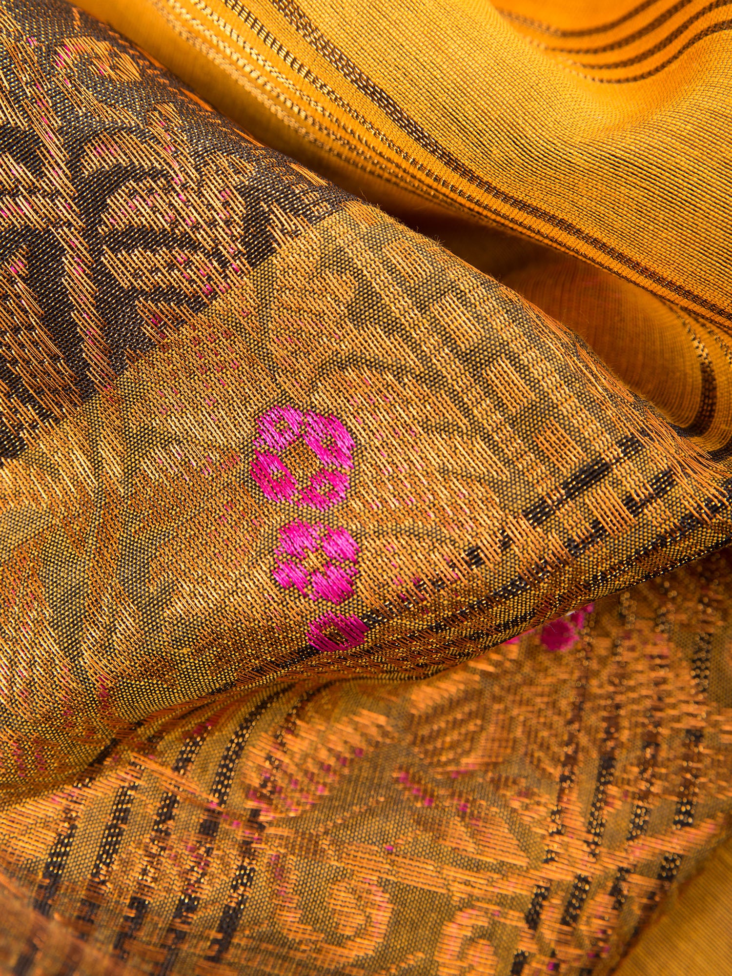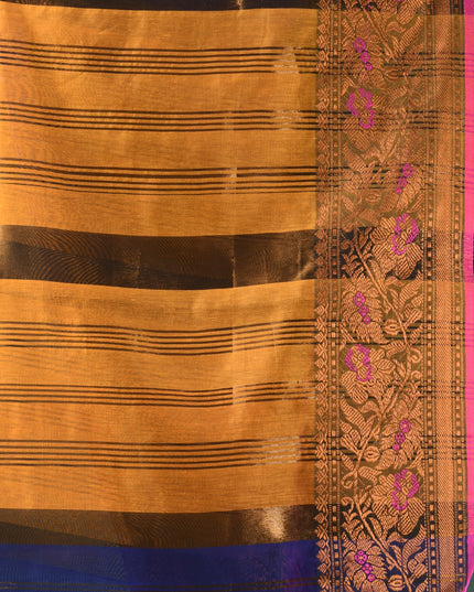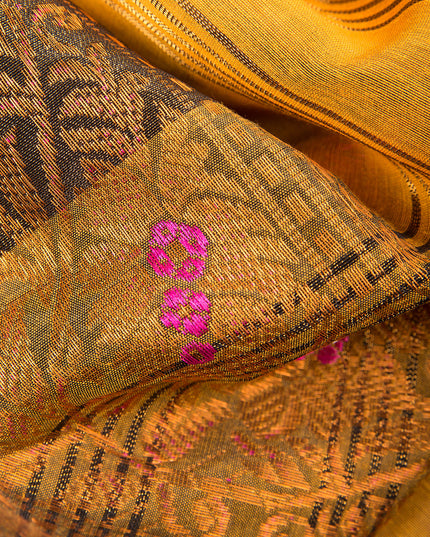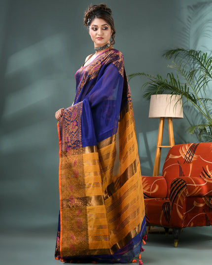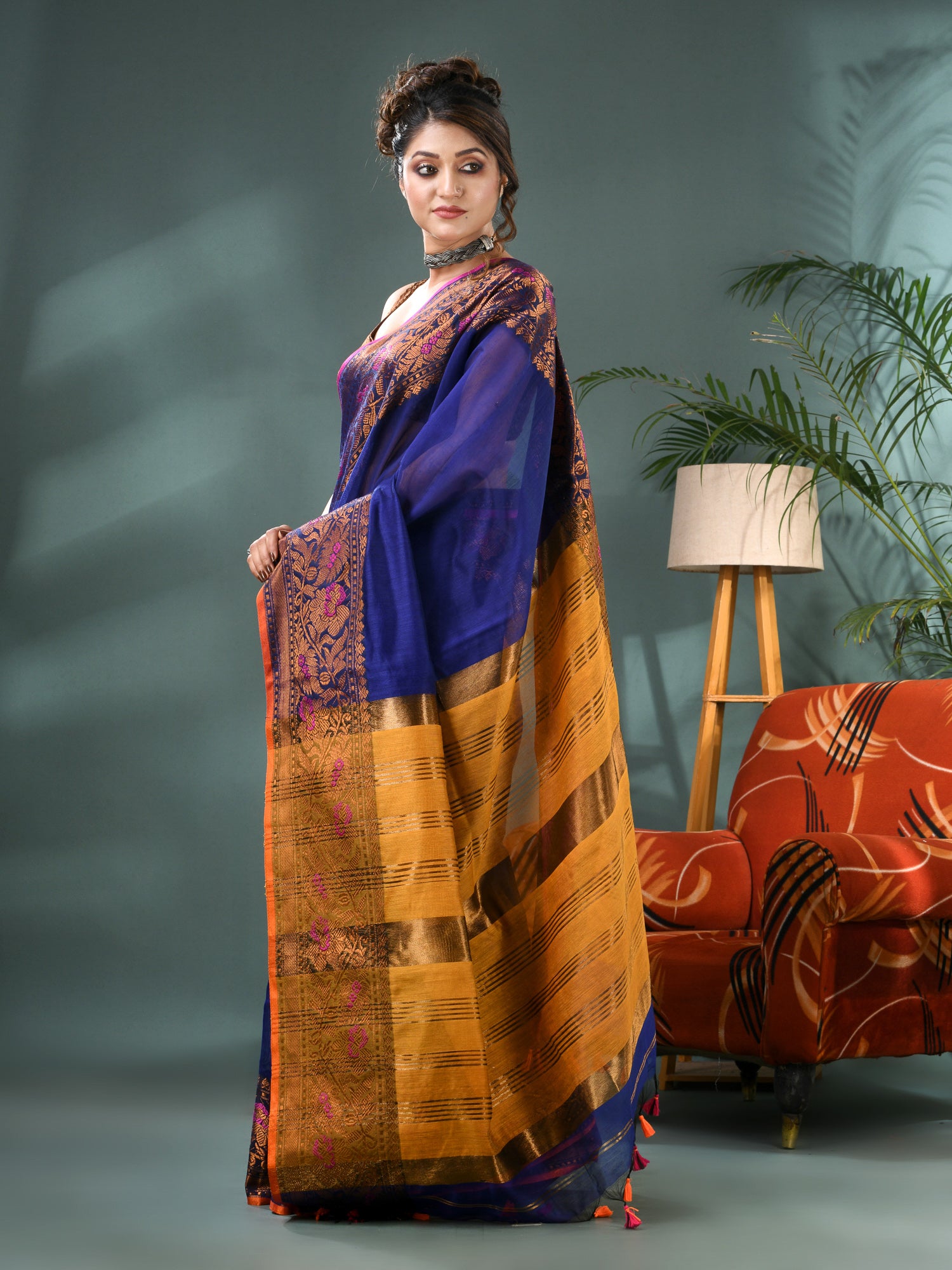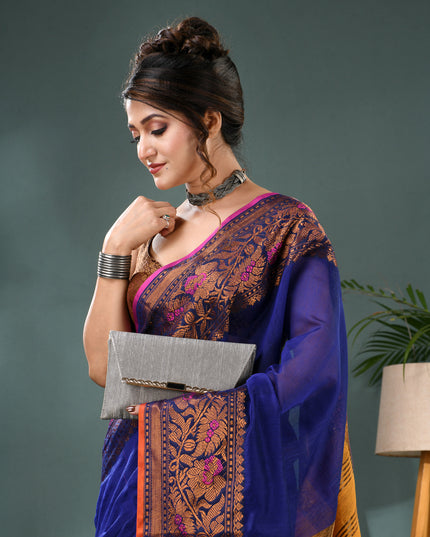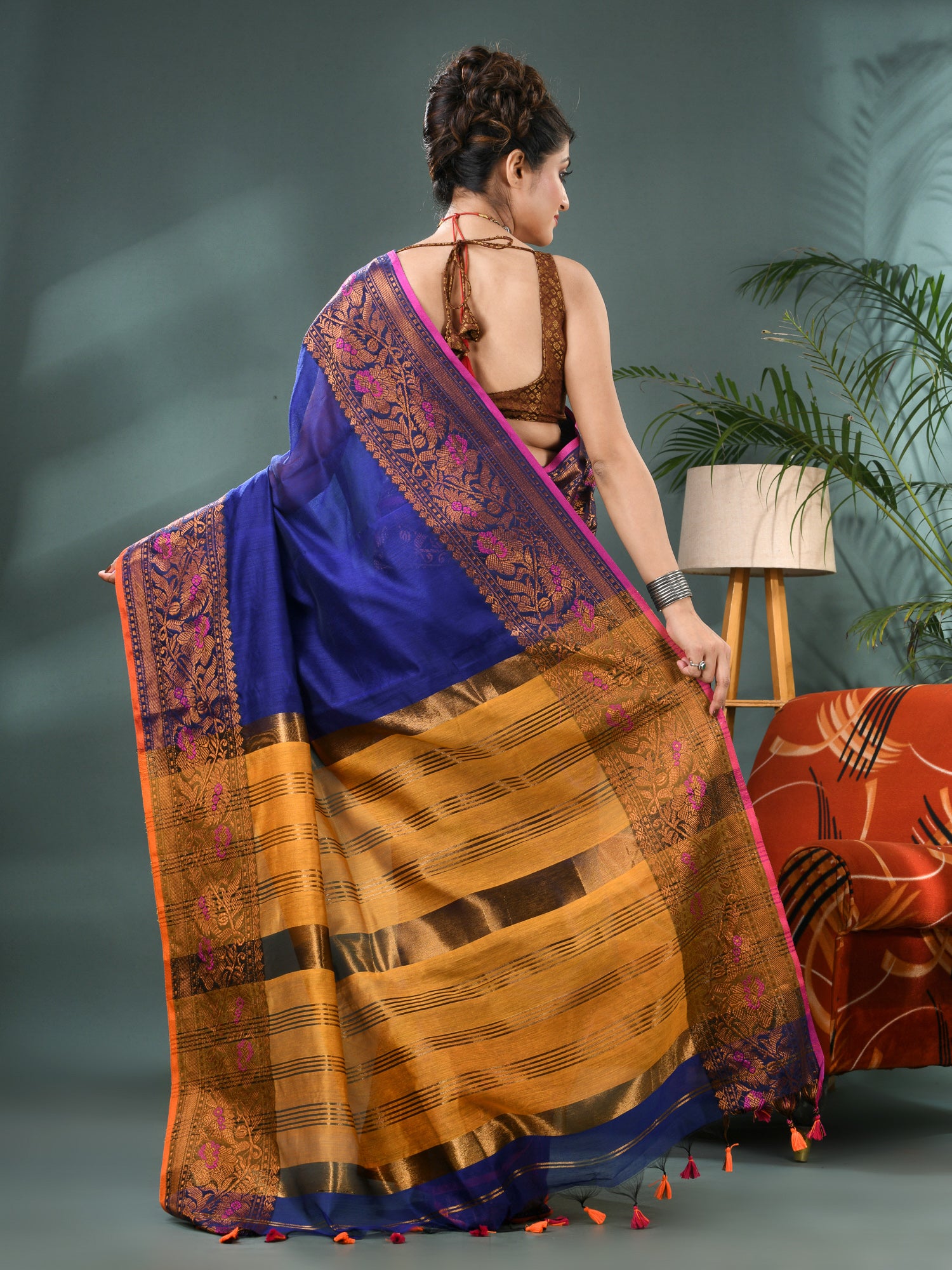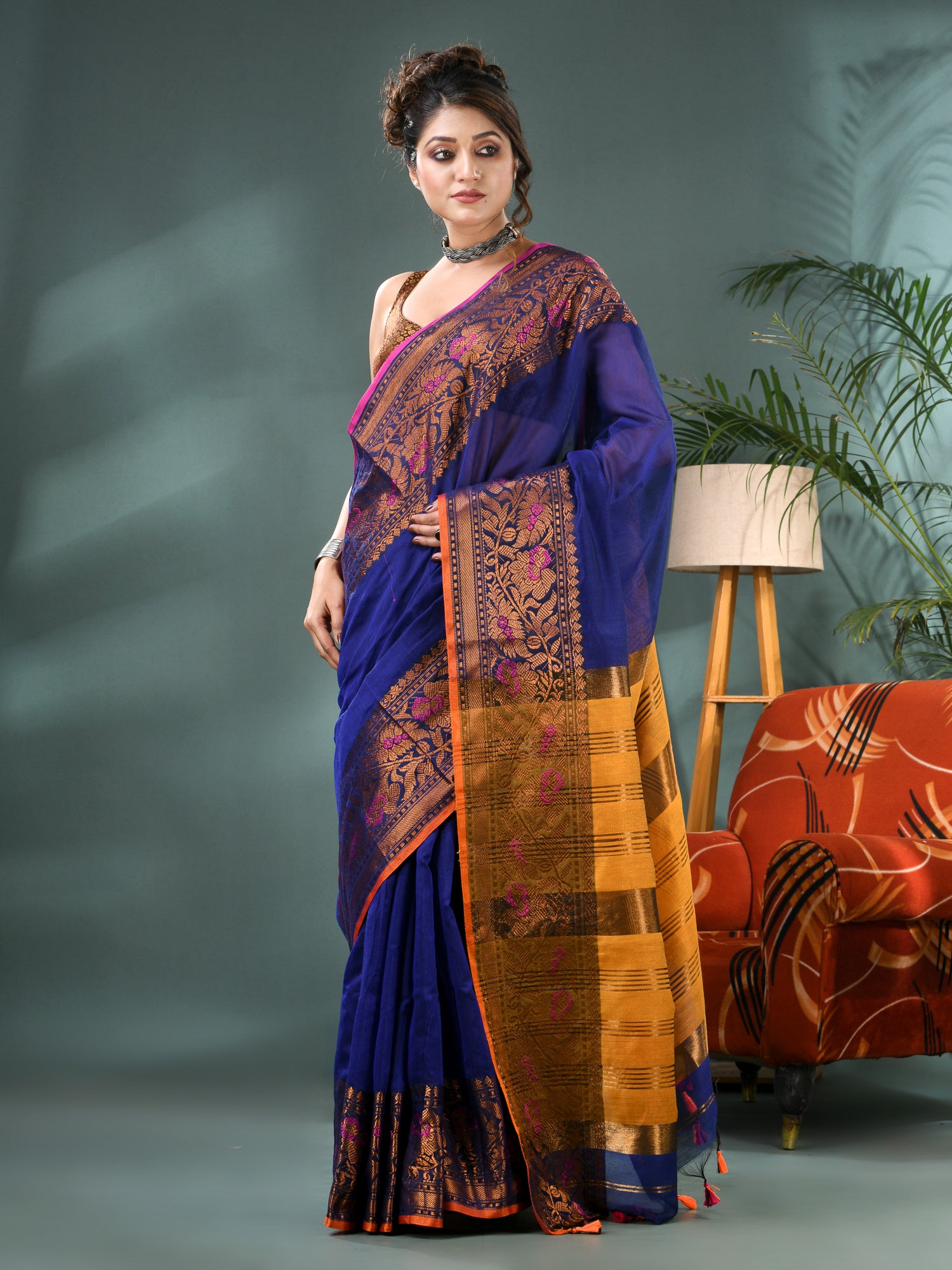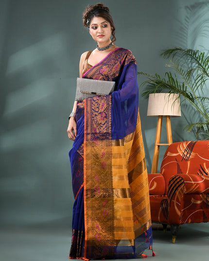 Pure Silk Kanjivaram Handloom Cotton Mine Rajoshree Designer Saree With Blouse Piece - Blue Yellow