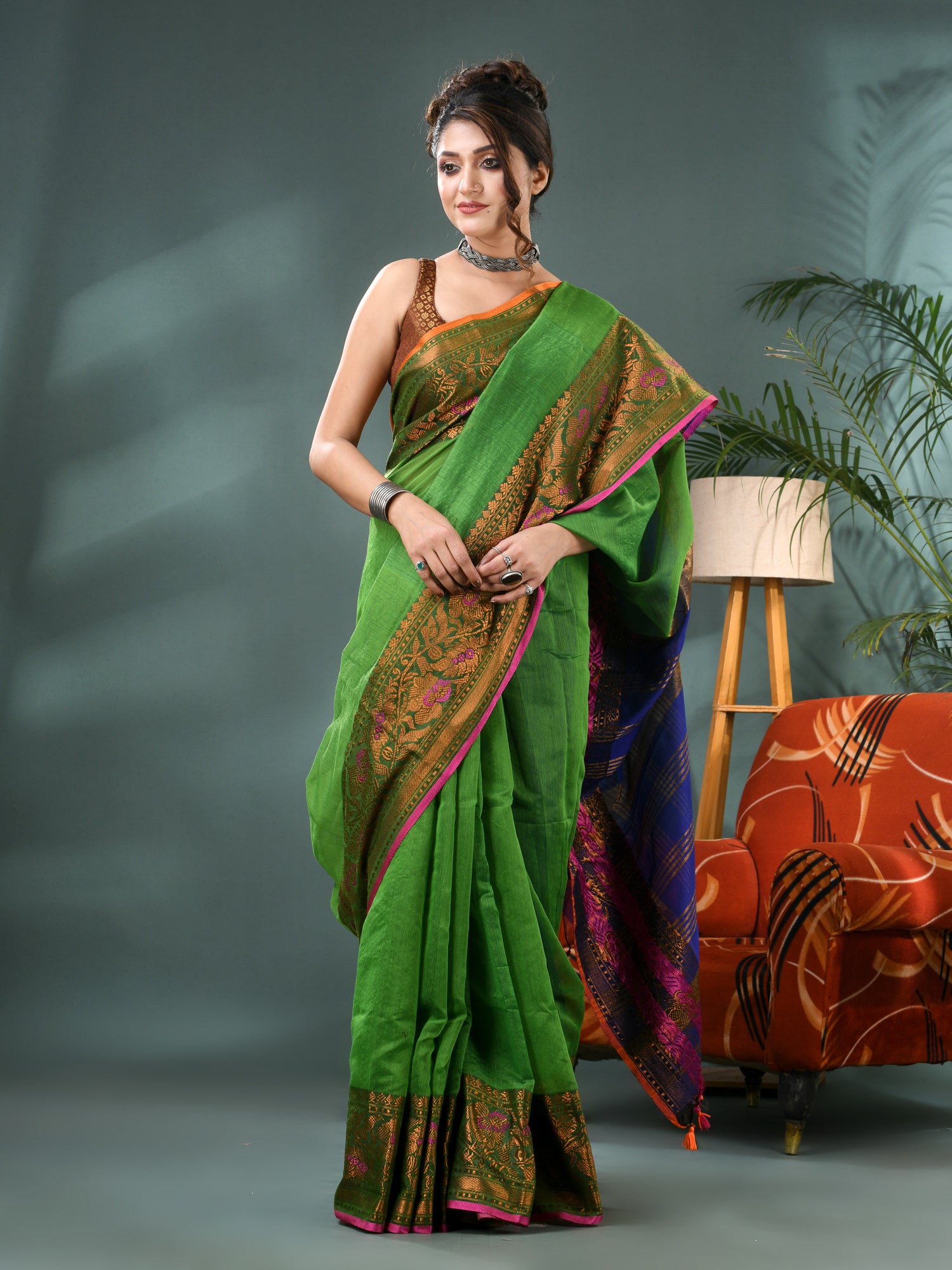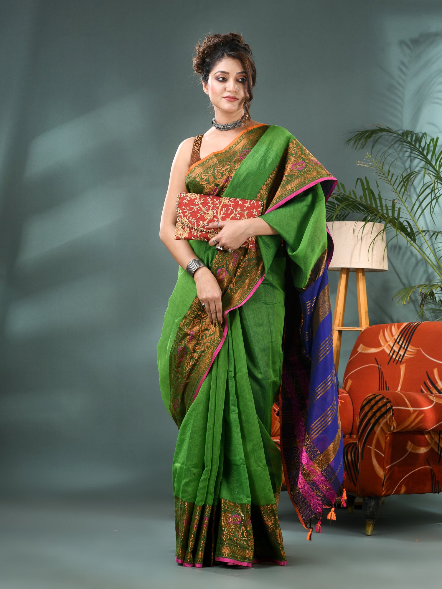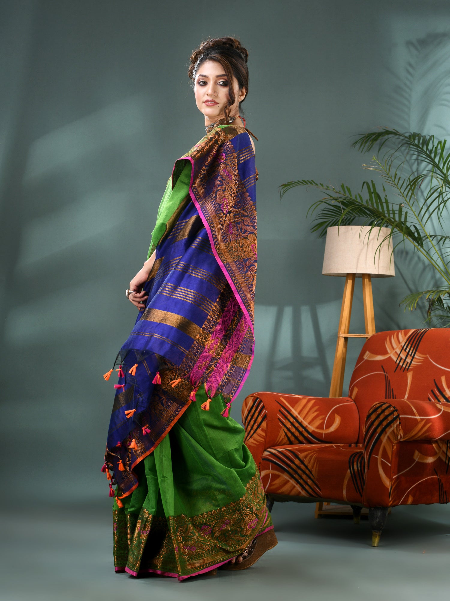 Pure Silk Kanjivaram Handloom Cotton Mine Rajoshree Designer Saree With Blouse Piece - Green Blue