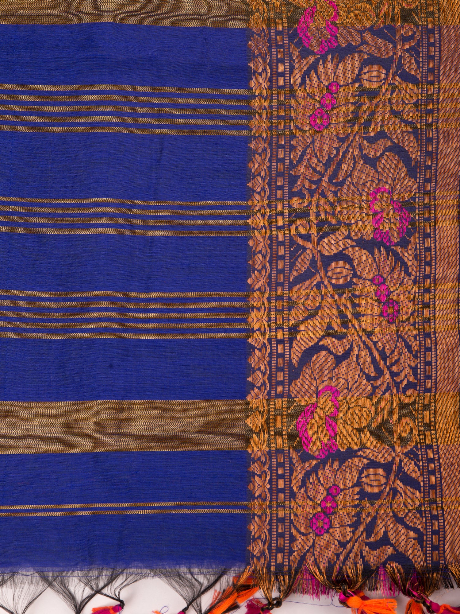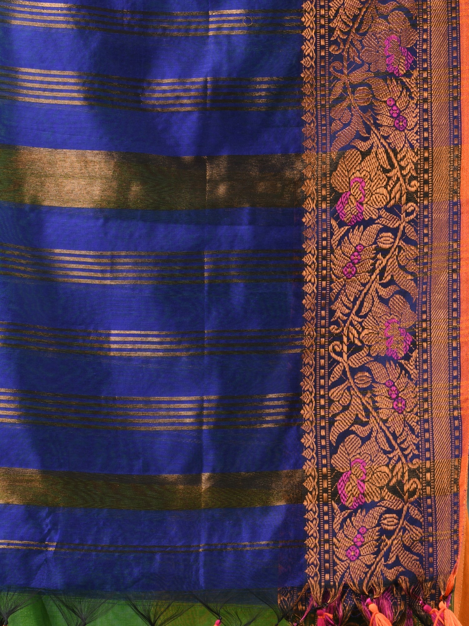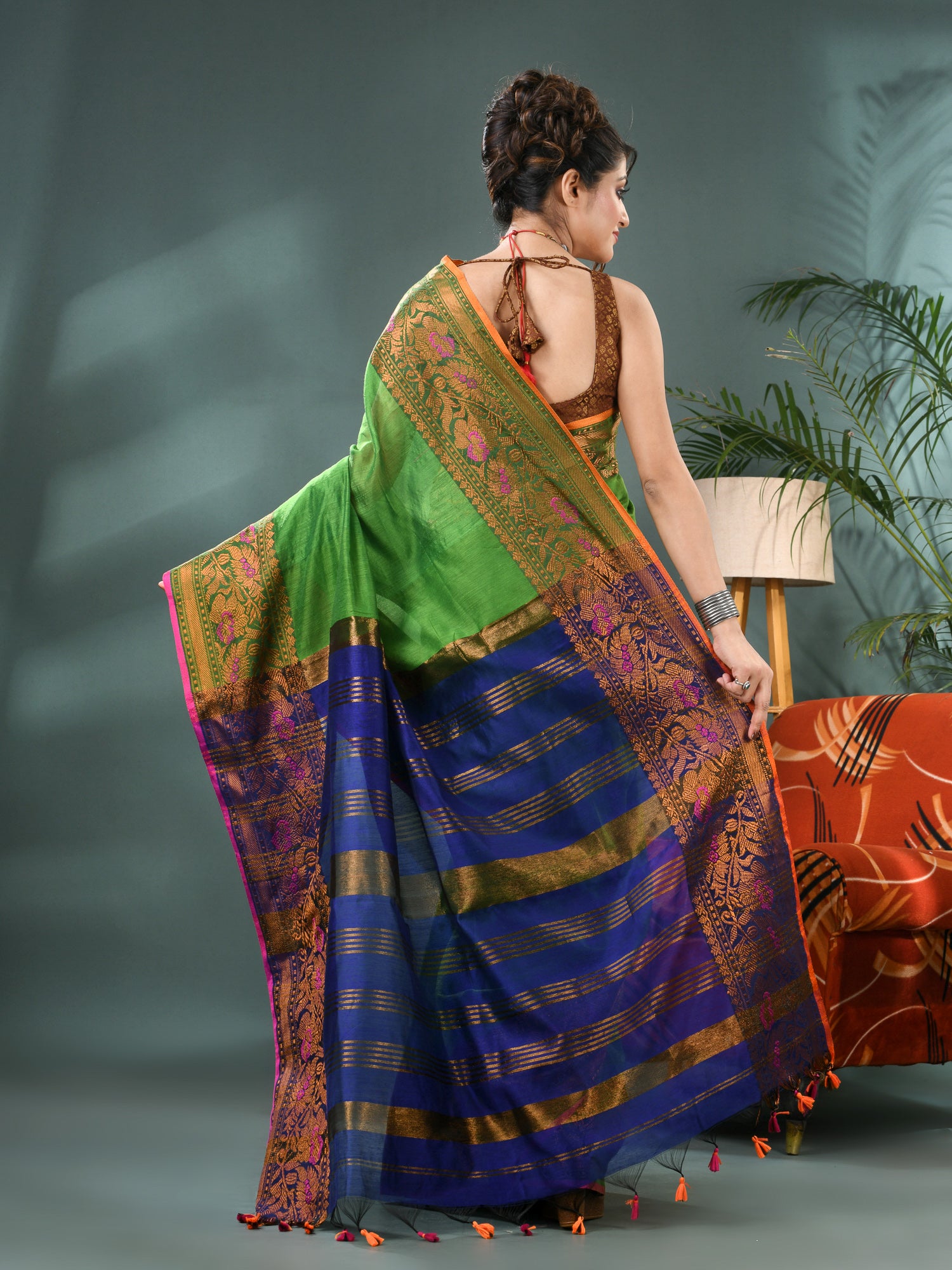 Pure Silk Kanjivaram Handloom Cotton Mine Rajoshree Designer Saree With Blouse Piece - Green Blue