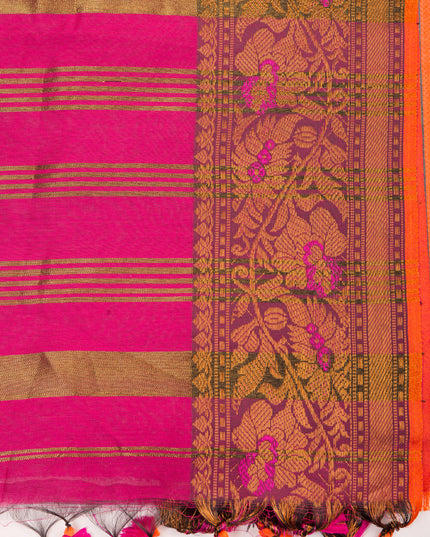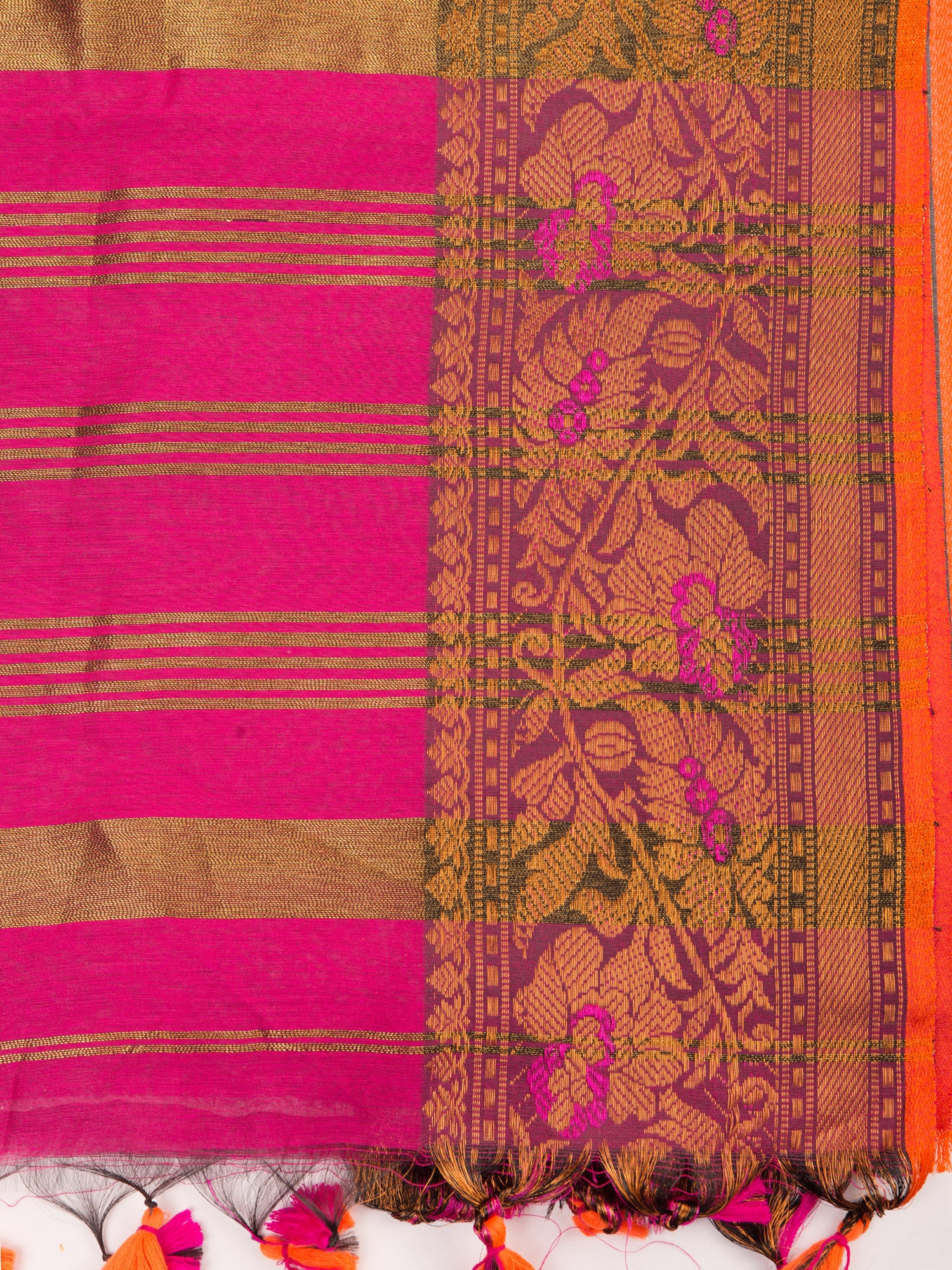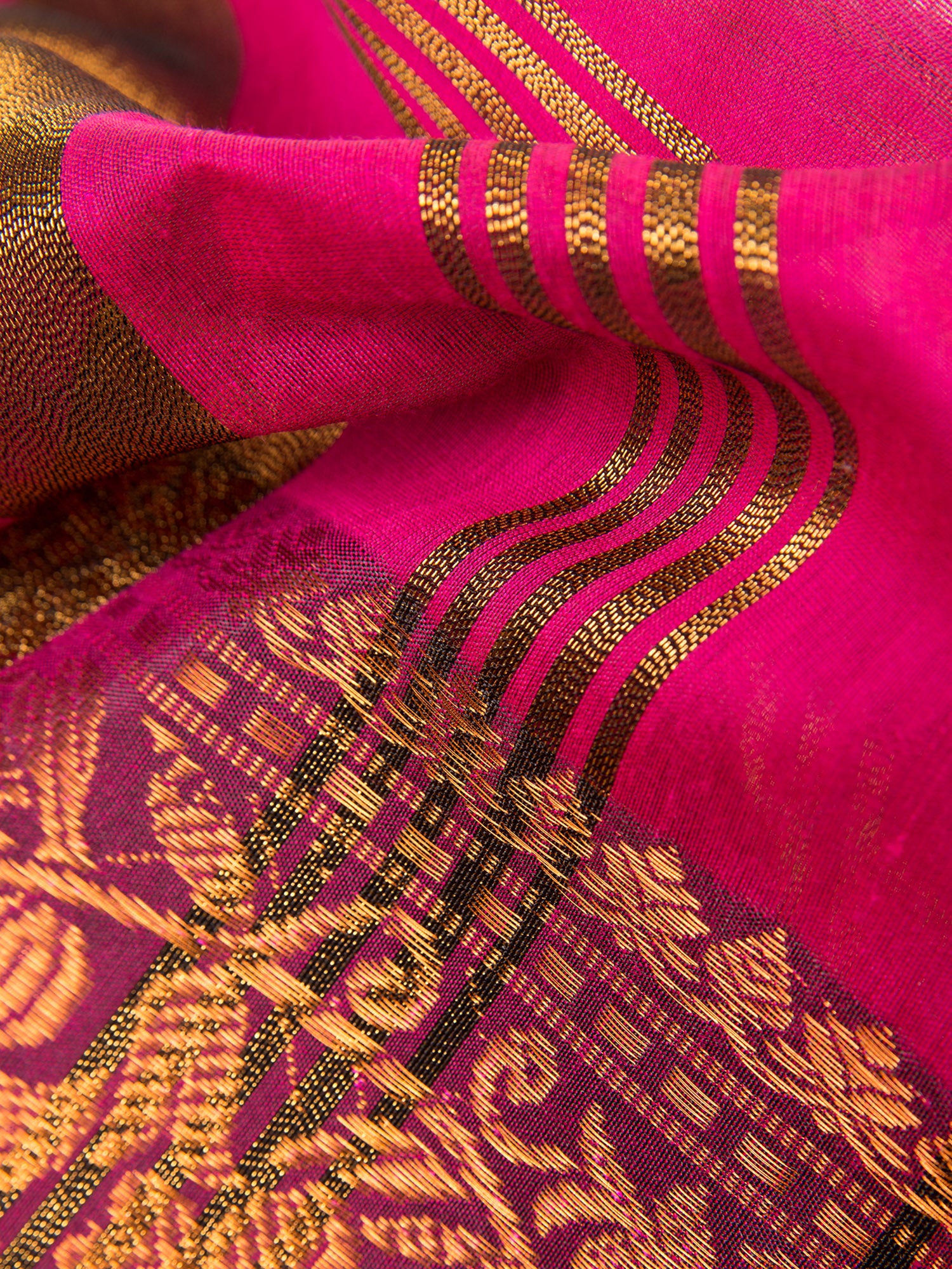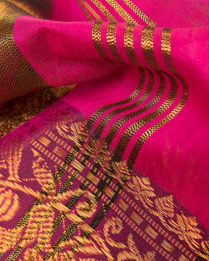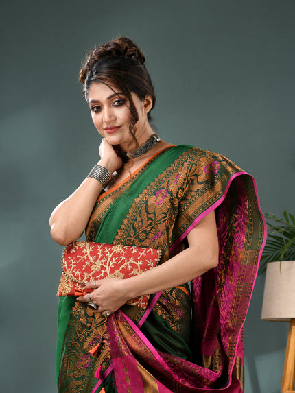 Pure Silk Kanjivaram Handloom Cotton Mine Rajoshree Designer Saree With Blouse Piece - Green Pink