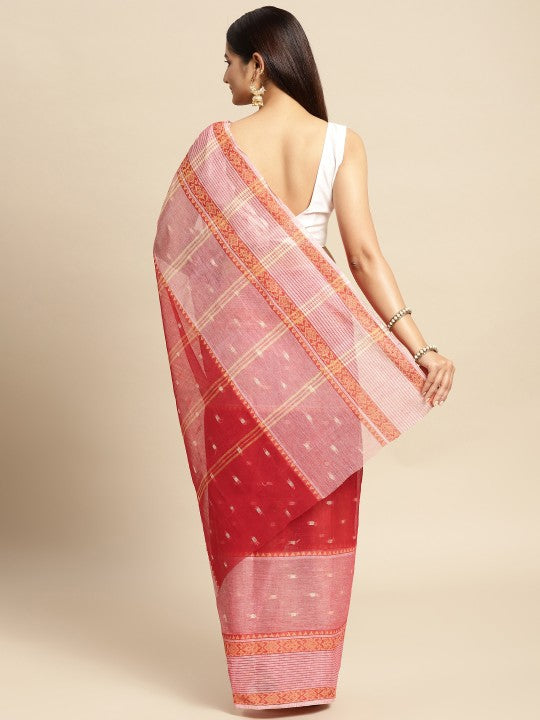 Red Ethnic Motifs Pure Cotton Taant Saree