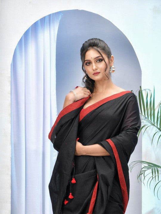 Solid Pure Cotton Taant Saree