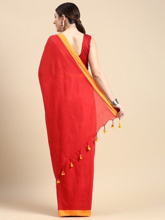 Buy DESH BIDESH Solid Pure Cotton Taant Saree - Sarees for Women from DESH BIDESH at Rs. 499. Style ID: 24016740. This red taant saree features a solid border. It comes with an unstitched blouse piece. The blouse worn by the model is for modelling purposes only. Check the image of the blouse piece to understand how the actual blouse piece looks like.