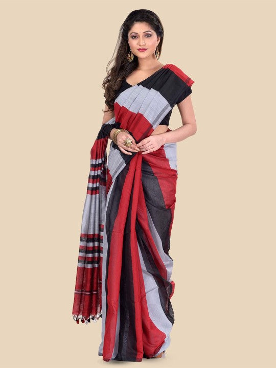 Description Discover the exquisite DESH BIDESH Striped Silk Cotton Saree, a perfect blend of tradition and contemporary style. This elegant saree features a striking red, black, and white striped pattern with a sophisticated solid border, making it ideal for festive occasions or daily wear. Crafted from soft silk cotton, it ensures exceptional comfort and a graceful drape, enhancing your silhouette. The saree comes with an unstitched blouse piece, allowing for custom tailoring to your preference. Please note, the blouse worn by the model is for styling purposes only; refer to the provided image for the actual blouse piece. This beautiful saree is easy to maintain with dry clean only care instructions. Elevate your ethnic wardrobe with this timeless piece, designed for the discerning Indian woman. Its vibrant colours and classic stripes make it a versatile addition for any event.