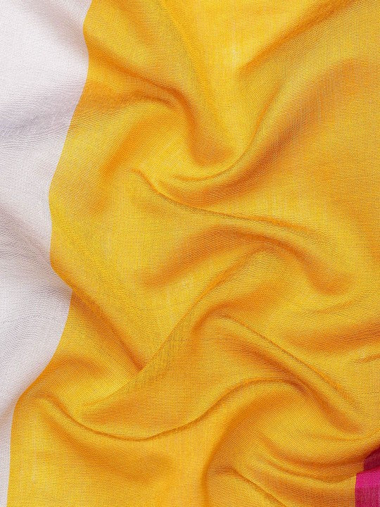 Bengal Ghicha Handloom Cotton Silk Saree With Blouse Piece (Orange Pink White)