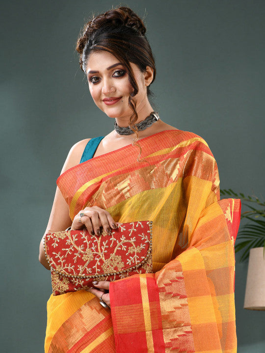 Striped Zari Pure Cotton Taant Saree