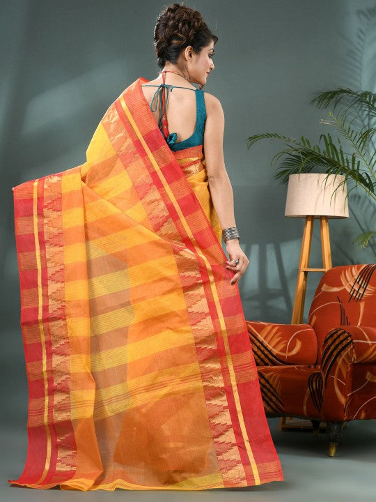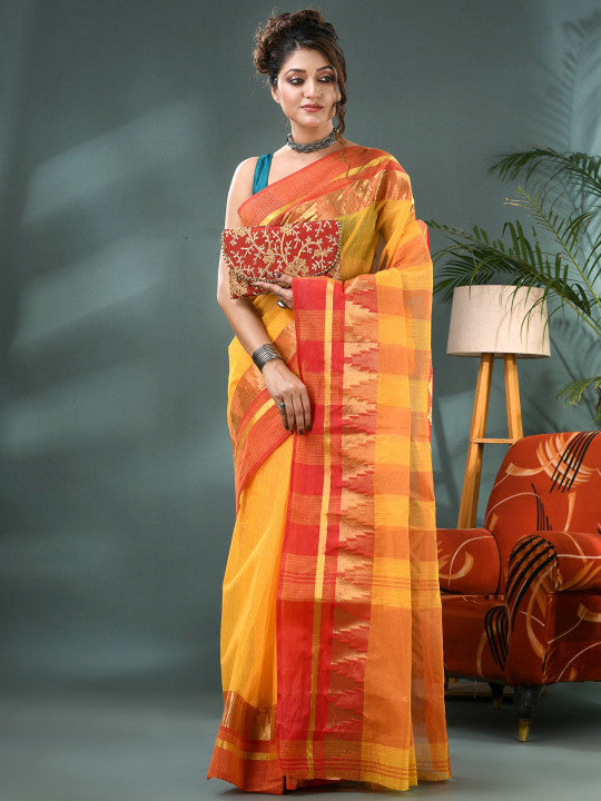 | Design | Mustard and green Taant saree |