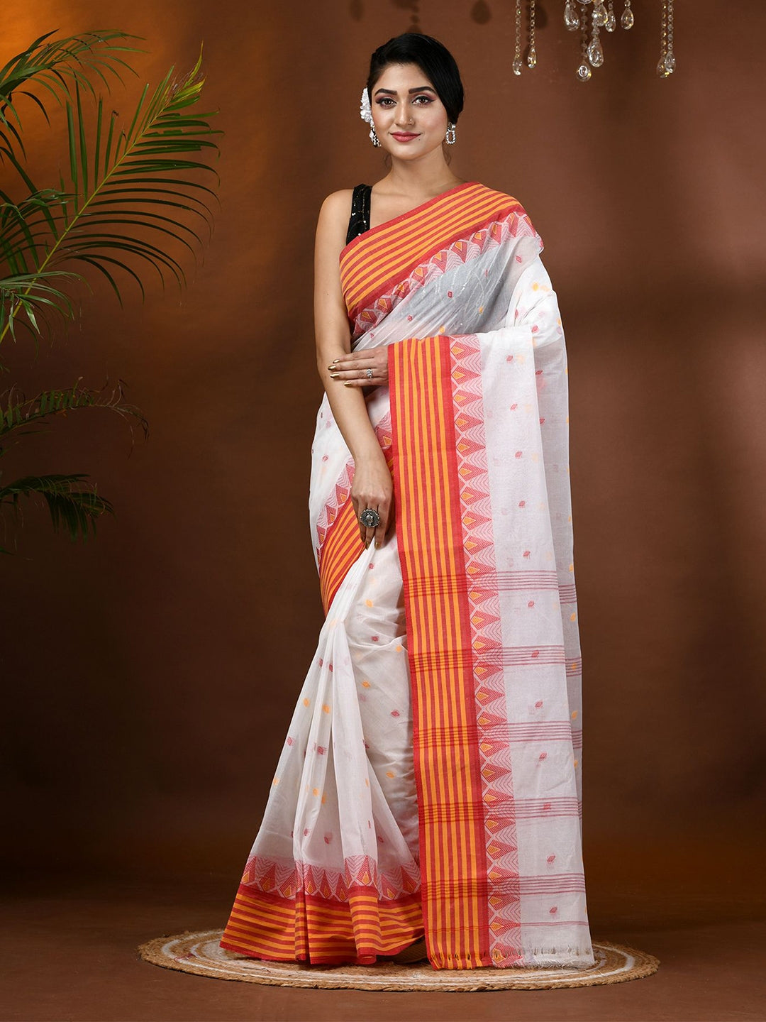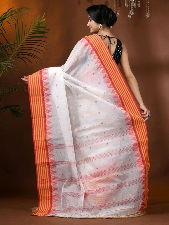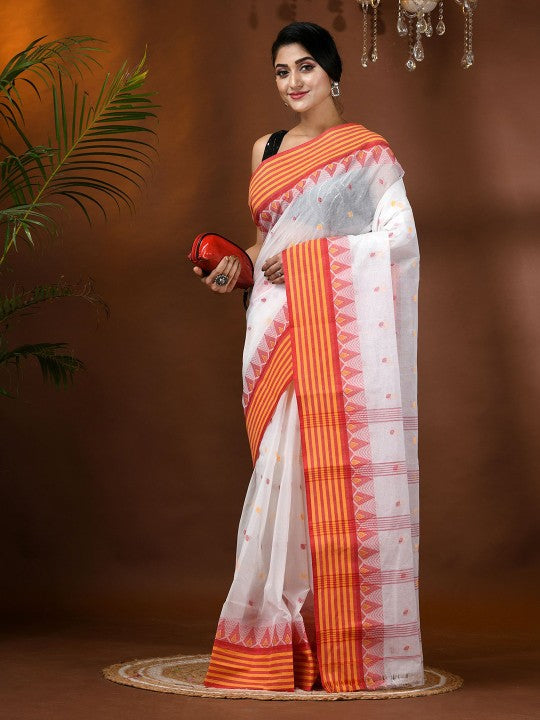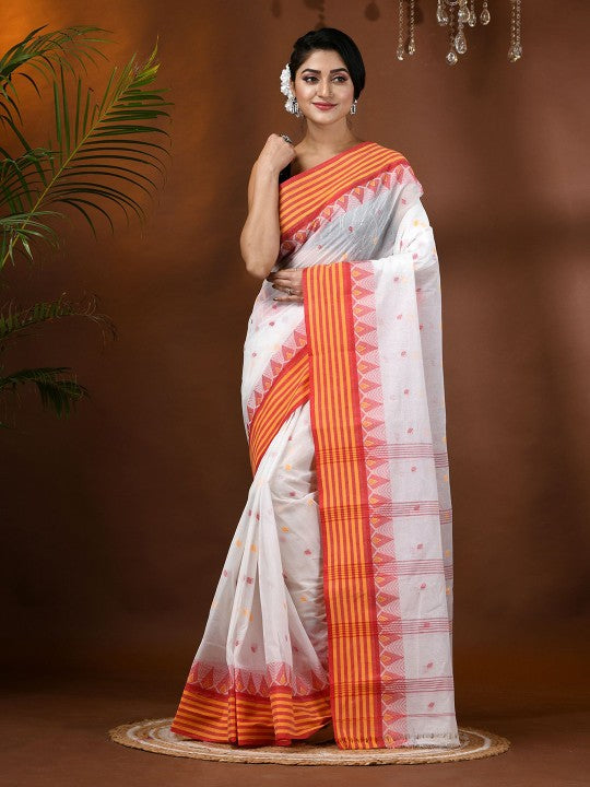 This exquisite saree, crafted from pure cotton Taant, embodies traditional Indian artistry with a contemporary floral design. The fabric is lightweight and breathable, offering exceptional comfort for prolonged wear. Its intricate woven border highlights skilled craftsmanship, making it suitable for various cultural events and daily elegance. The saree's vibrant colors and delicate patterns ensure a graceful drape. This piece is a testament to timeless style, providing both aesthetic appeal and practical utility. It represents a fusion of heritage and modern sensibilities, perfect for the discerning individual. The pure cotton composition ensures durability and ease of maintenance. This saree is designed to complement diverse body types, enhancing natural elegance. It is an ideal choice for those seeking refined ethnic wear.