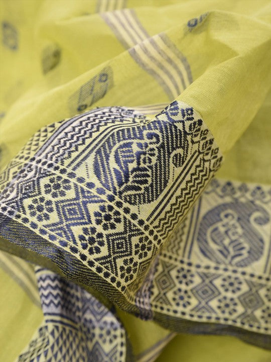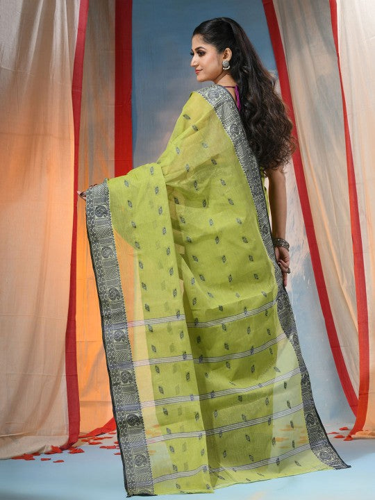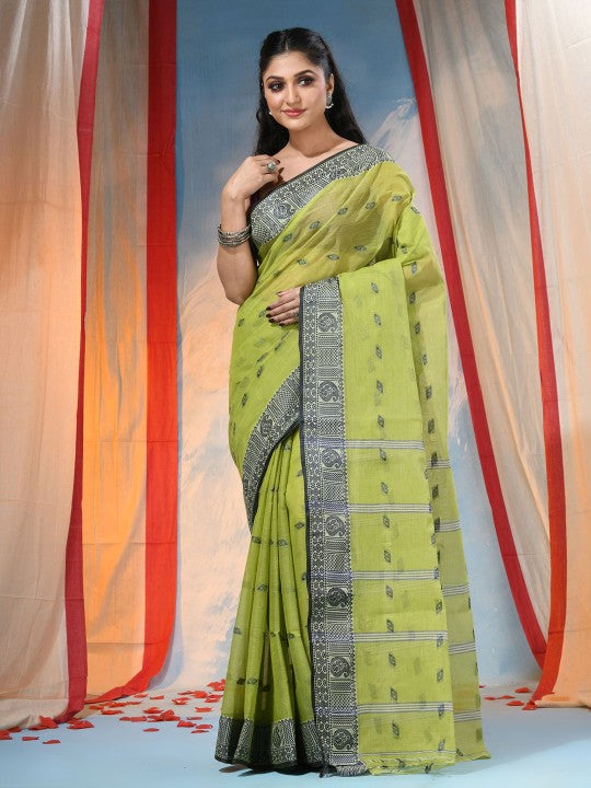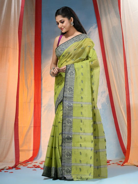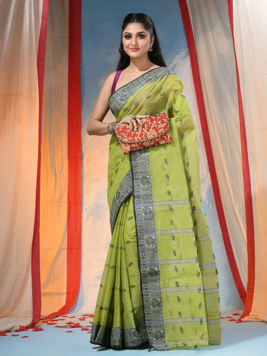 Green Floral Pure Cotton Handloom Saree with Woven Design
